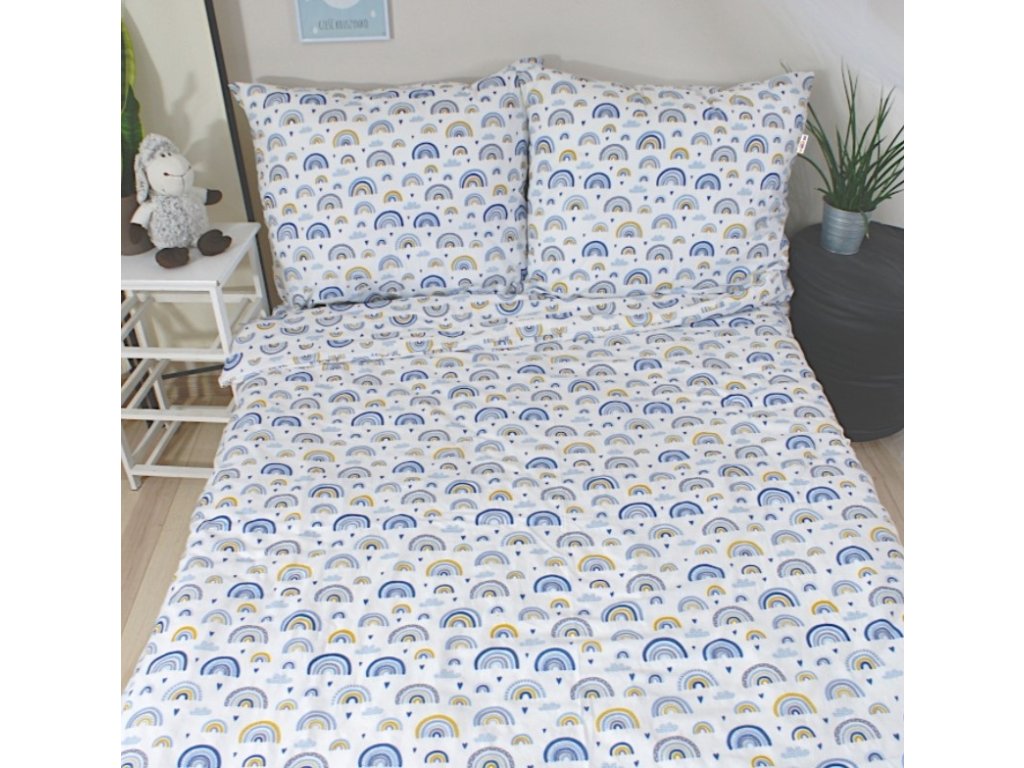 Baby Nellys 2-dílné bavlněné povlečení - Duha, modrá