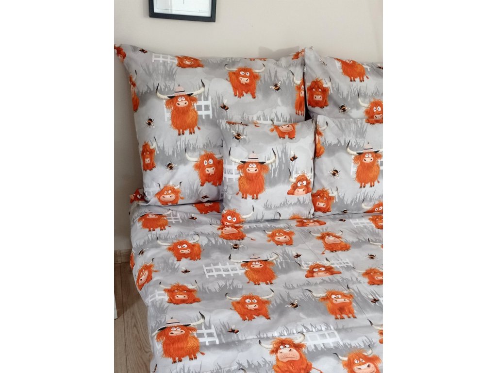 Dětské povlečení, bavlna 2D - Bizoni v šedé