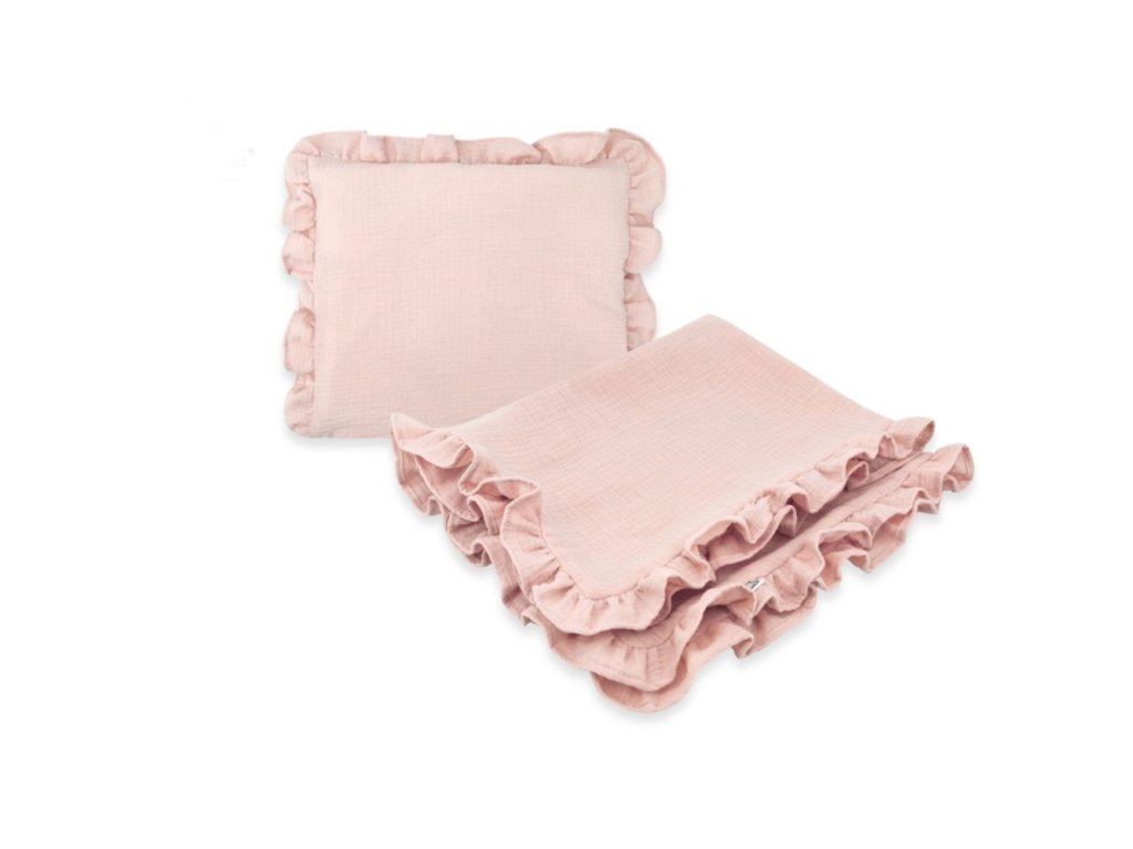 Luxusní 2D sada Nature - polštářek a deka s volánkem - pudrově růžová