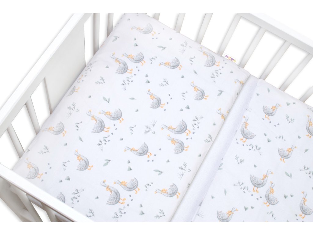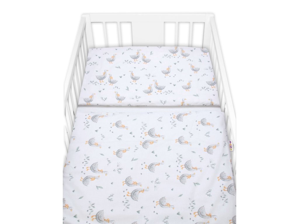 Povlečení do postýlky, bavlna, 2D sada, Husy, bílé