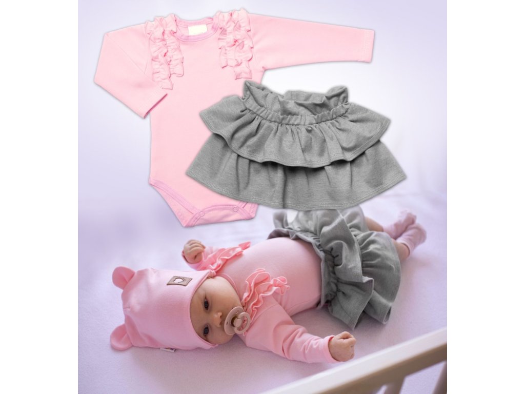 BABY NELLYS 2-dílná sada, body dl.rukáv + suknička Dance Baby, růžová/šedá, vel. 98