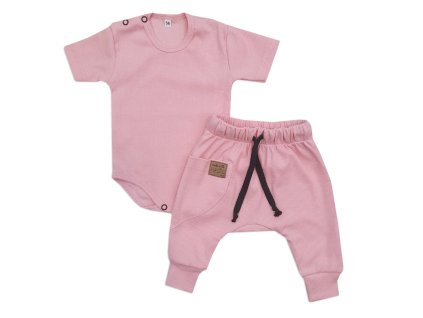 Žebrovaná souprava body kr. rukáv + tepláčky Magic, bavlna, růžová