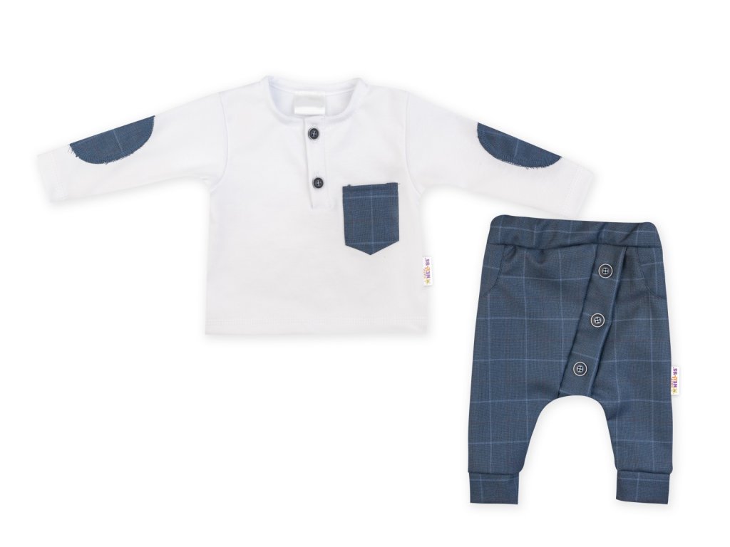 Baby Nellys 2-dílná sada Robert, tričko s dl. rukávem, kalhoty Baggy - modré kárko