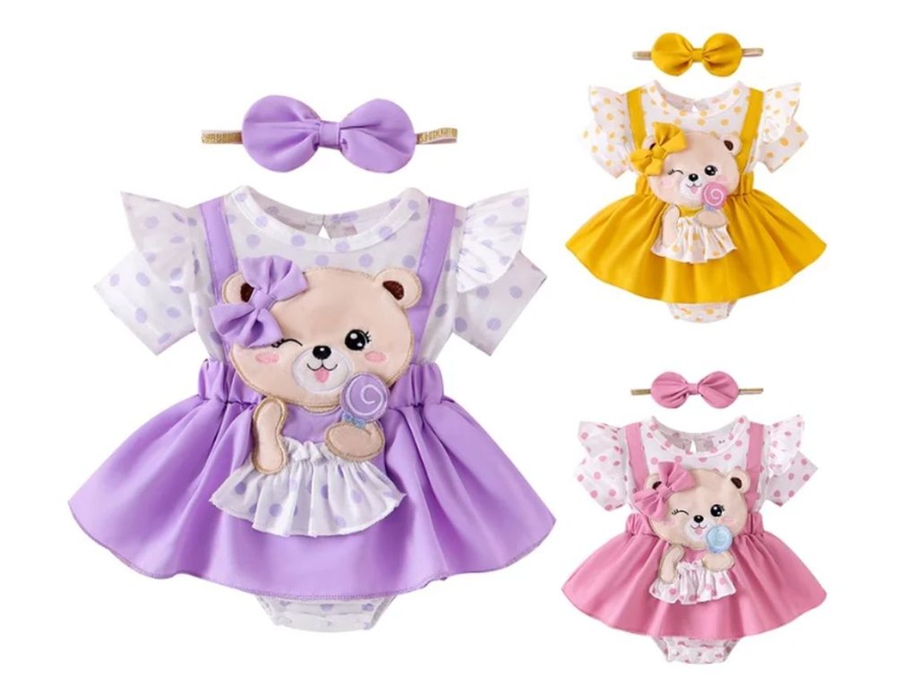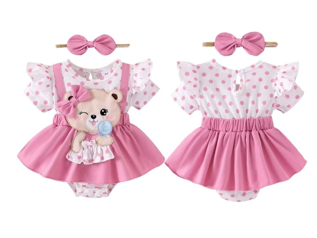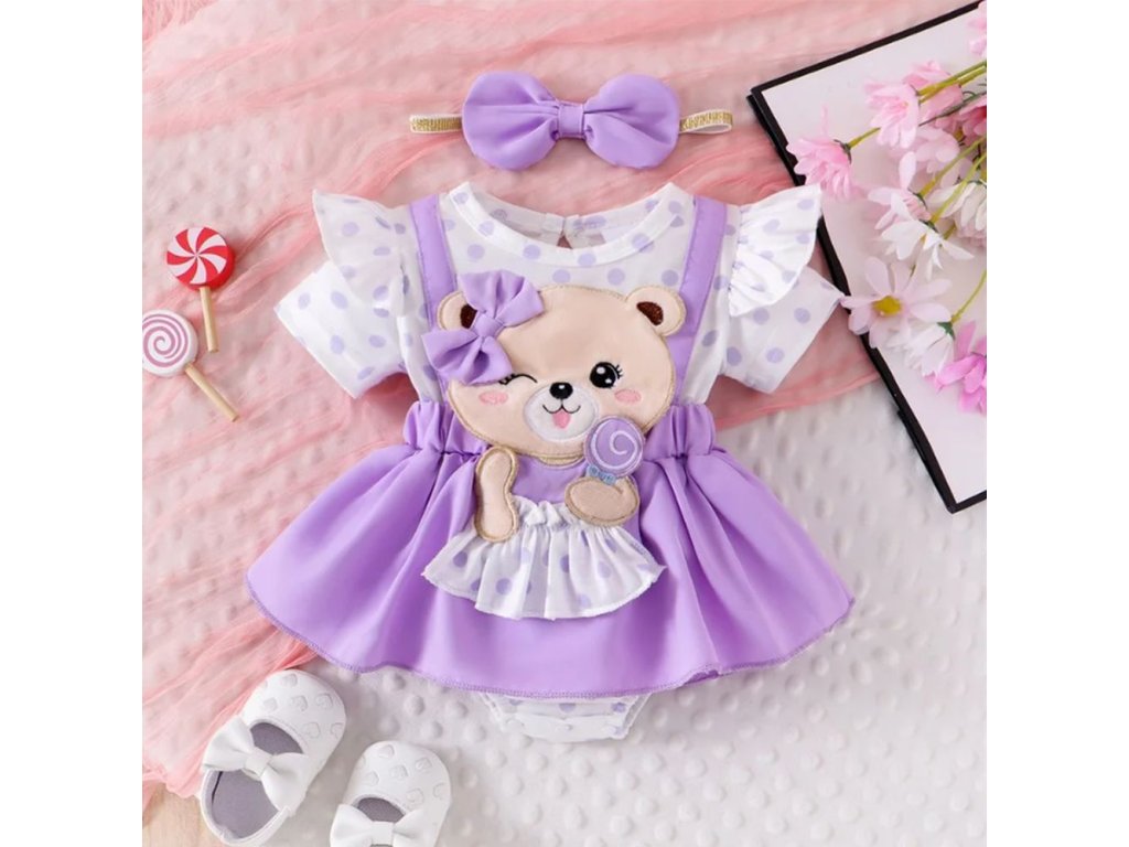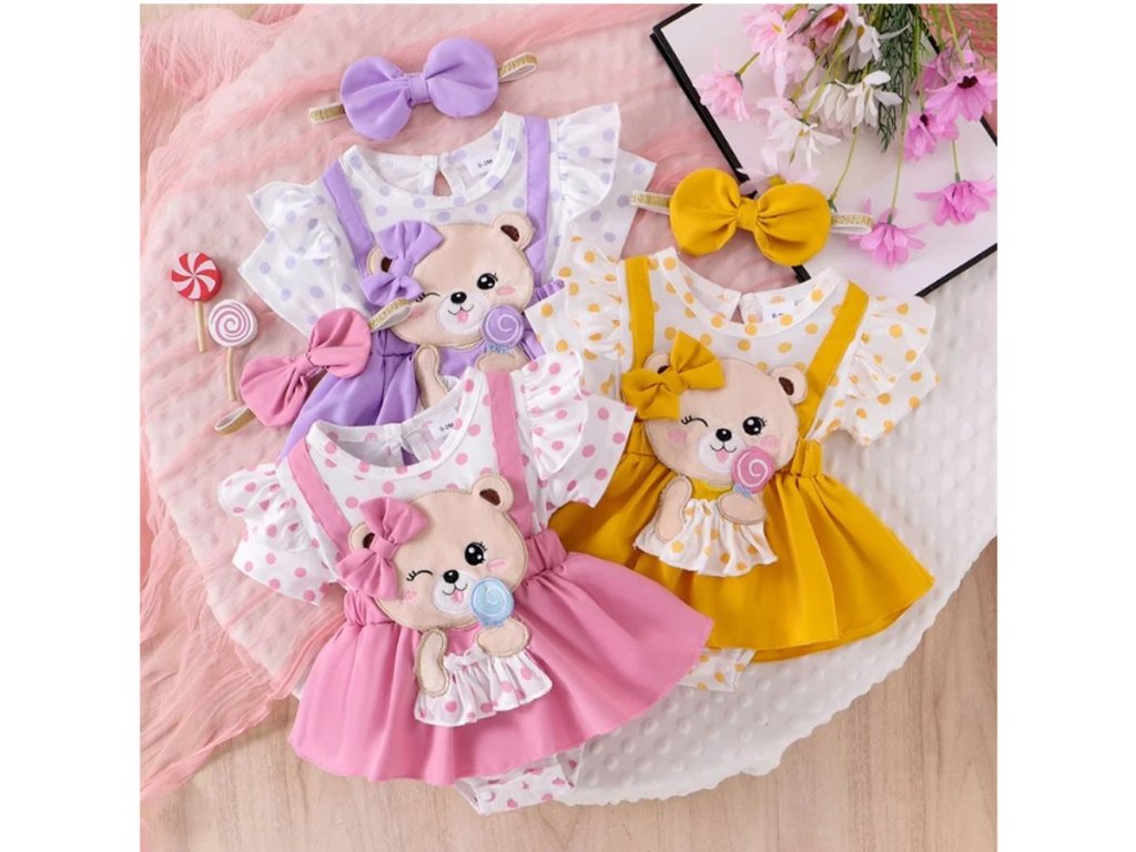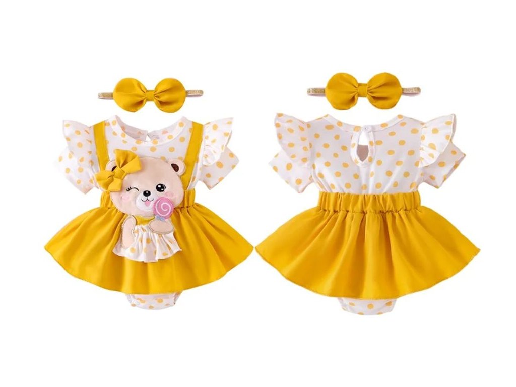 Dívčí letní set - body se sukní + čelenka "medvídek" (vel. 3-18 měsíců)
