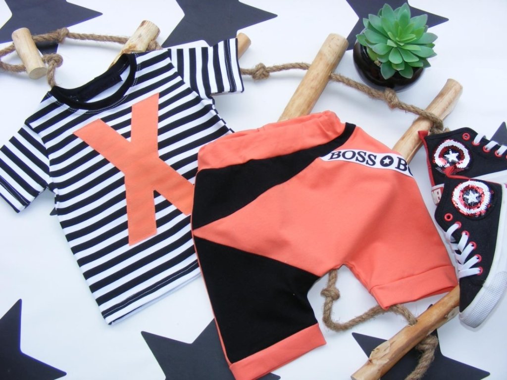 G-baby 2-dílná sada tričko kr. rukáv, kraťásky New Boss X - proužek, cihlová