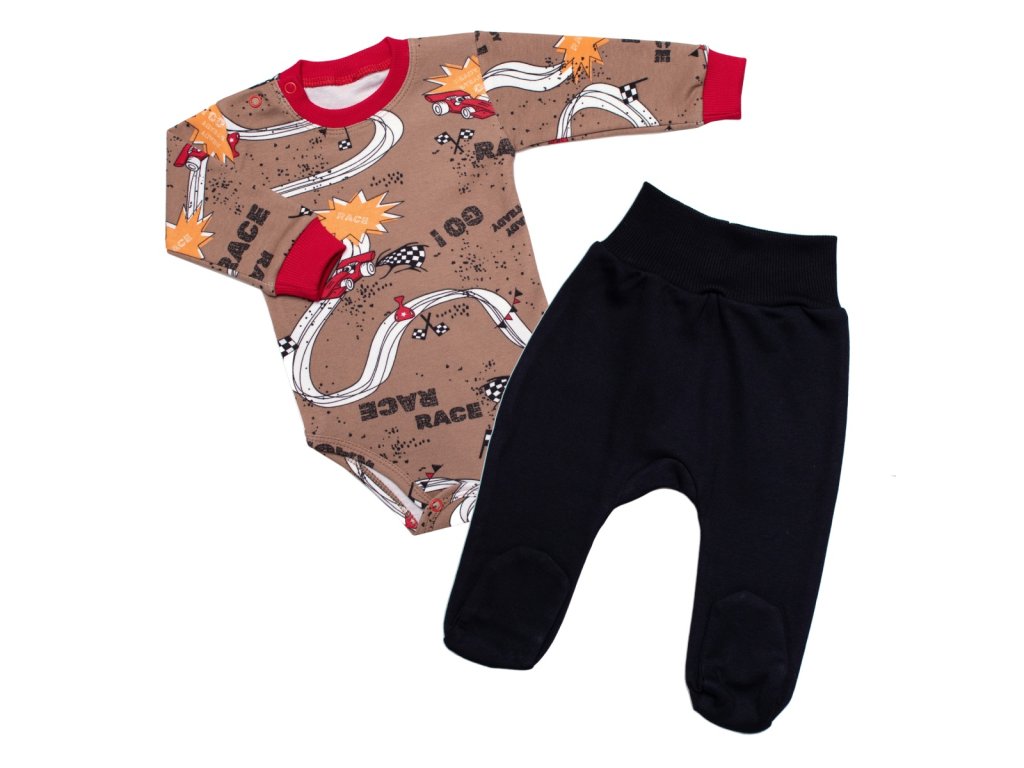 Kojenecké body zap. u krku + polodupačky RACE, 2D sada, Mrofi, hnědá