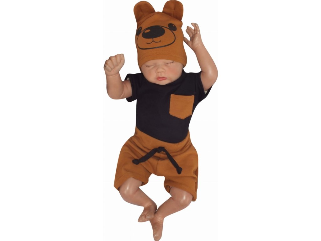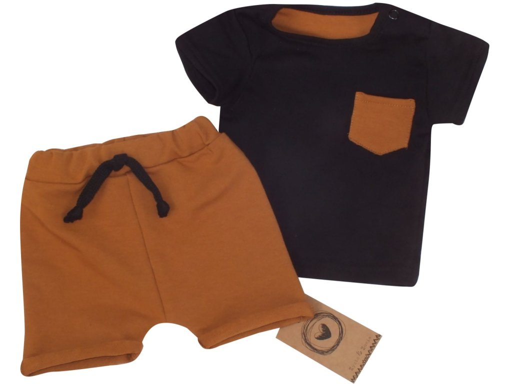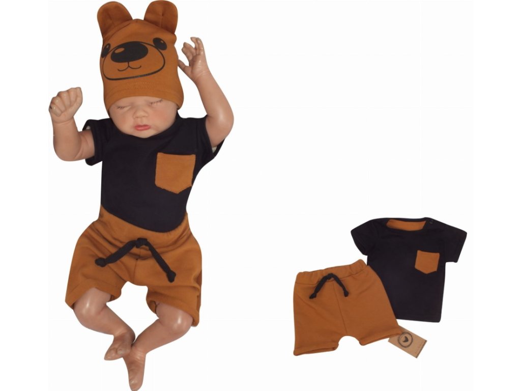 Z&Z 2-dílná sada tričko kr. rukáv, kraťásky s provázkem - hnědá, černá