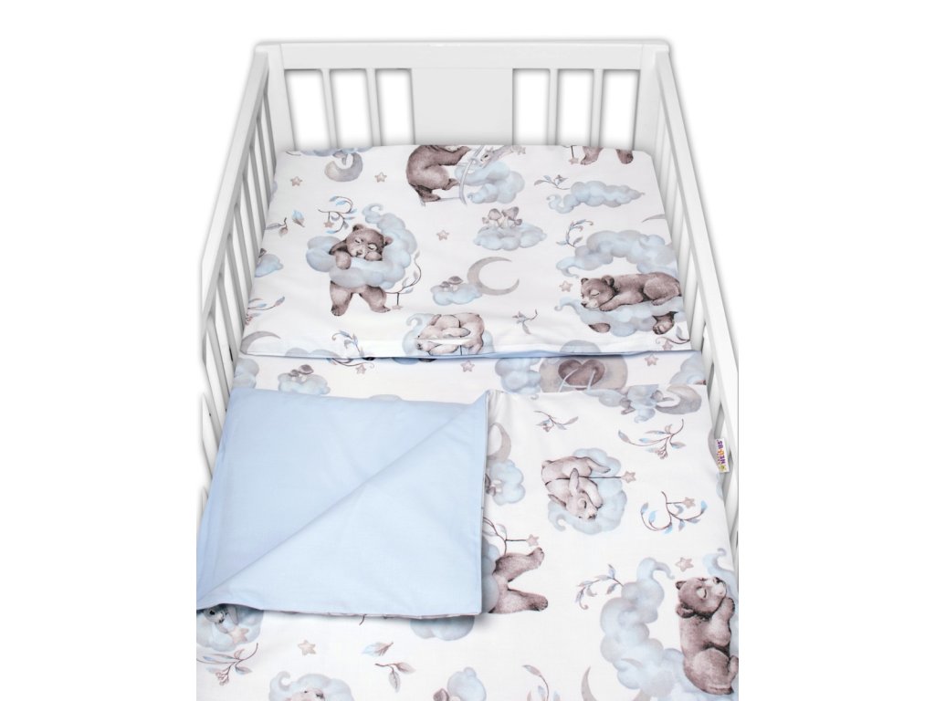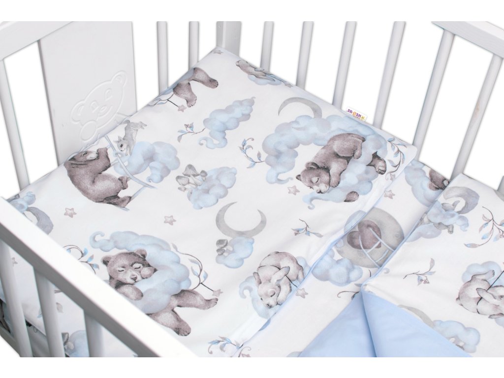 3-dílná sada Mantinel s povlečením Baby Nellys, Zvířátka na mráčku, modrá/bílá