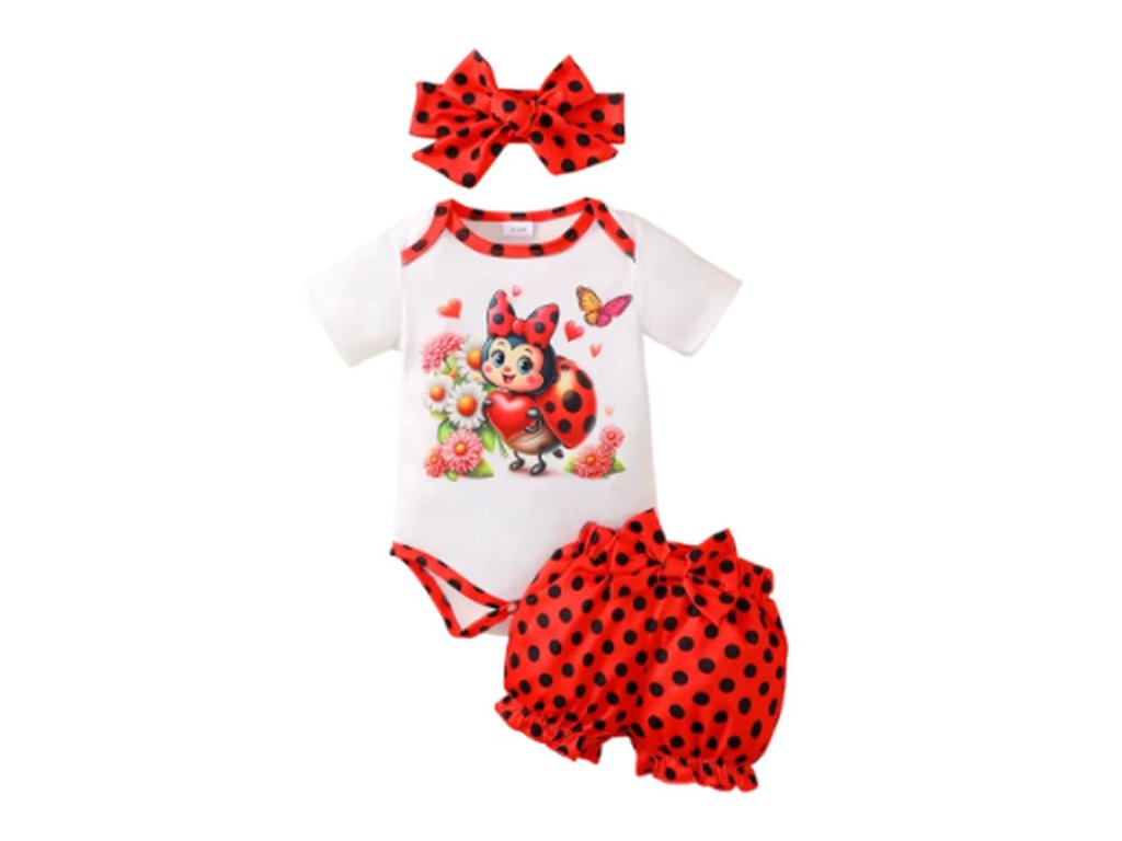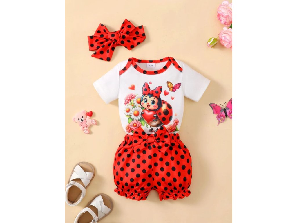 Dívčí letní set (body + kraťásky + čelenka) - "beruška", vel. 0-24 měsíců