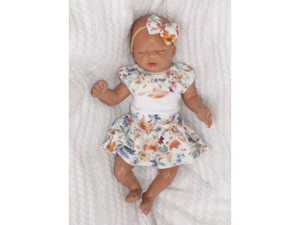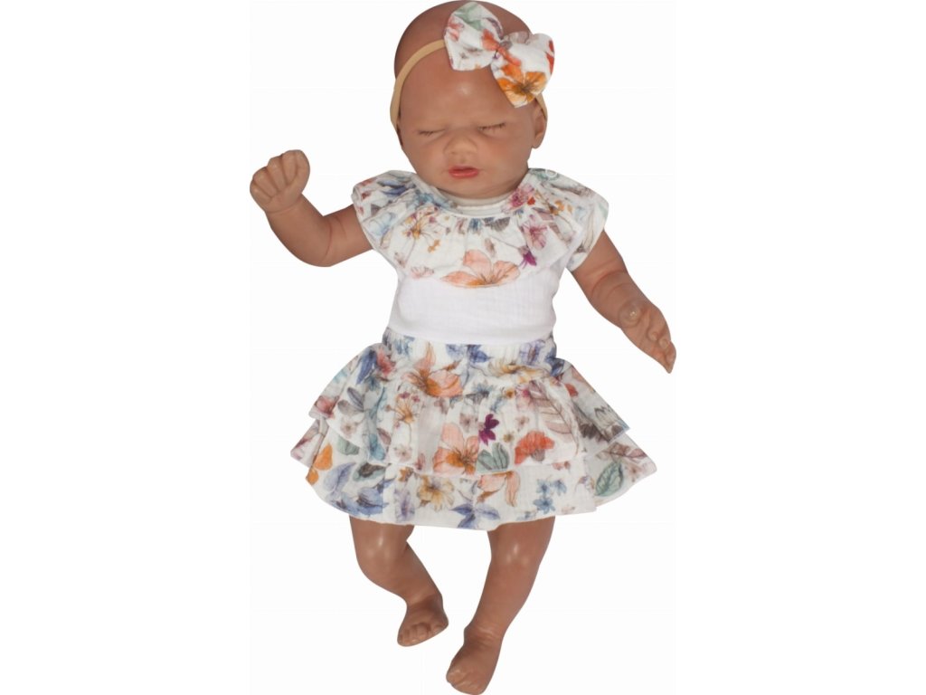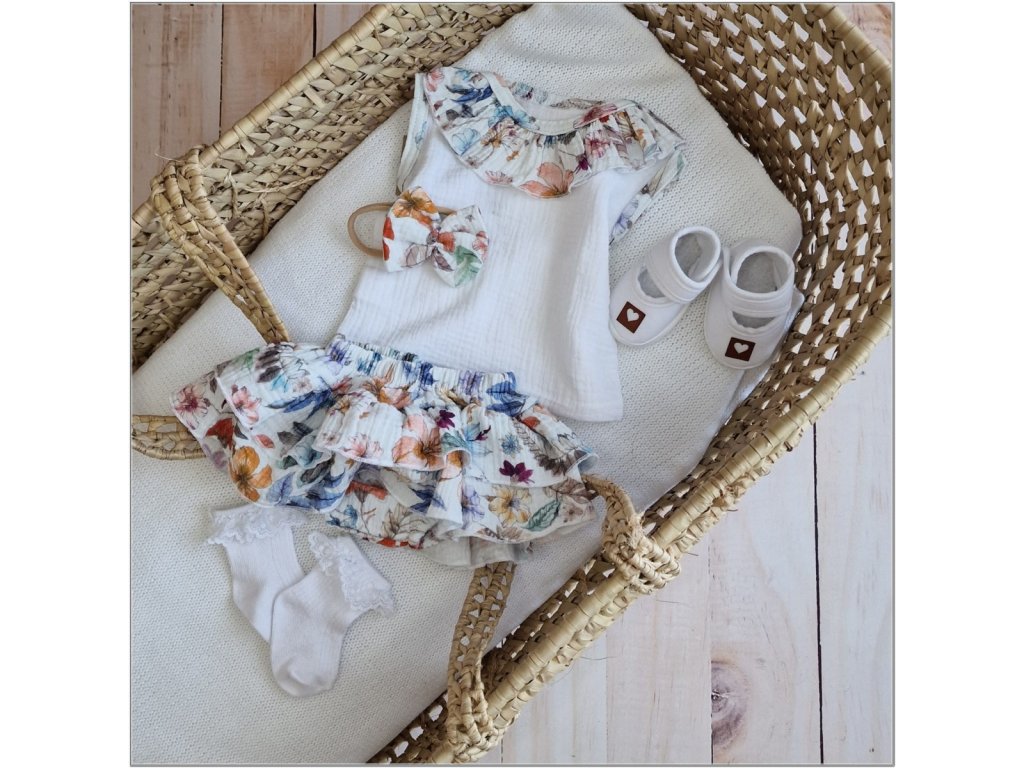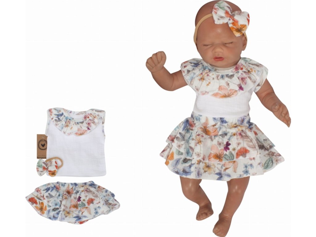 Mušelínové tilko, kraťasy se sukničkou + čelenka, 3D sada, Květy Z&Z, bílá