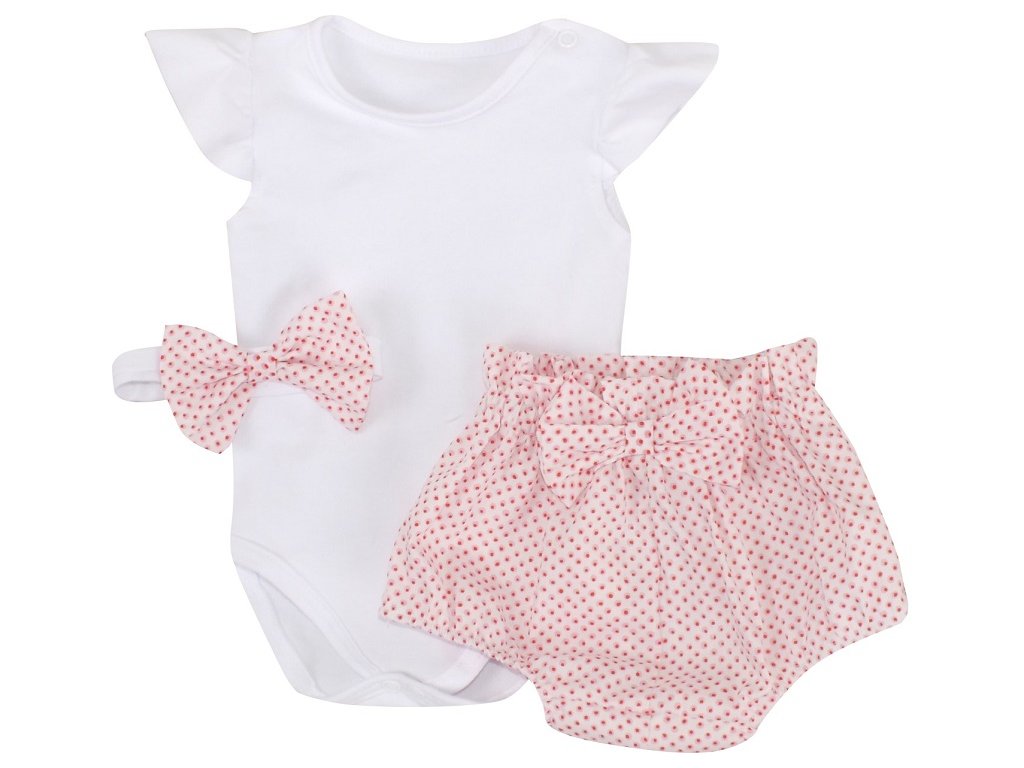 Z&Z 3-dílná sada body kr. rukáv, kraťásky, čelenka s mašlí - růžová, bílá