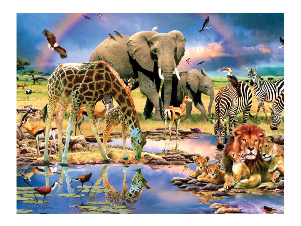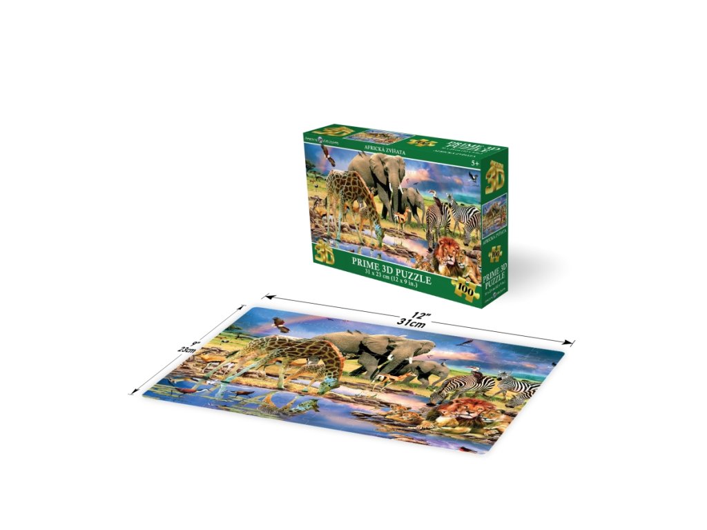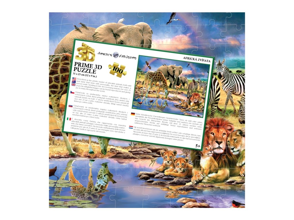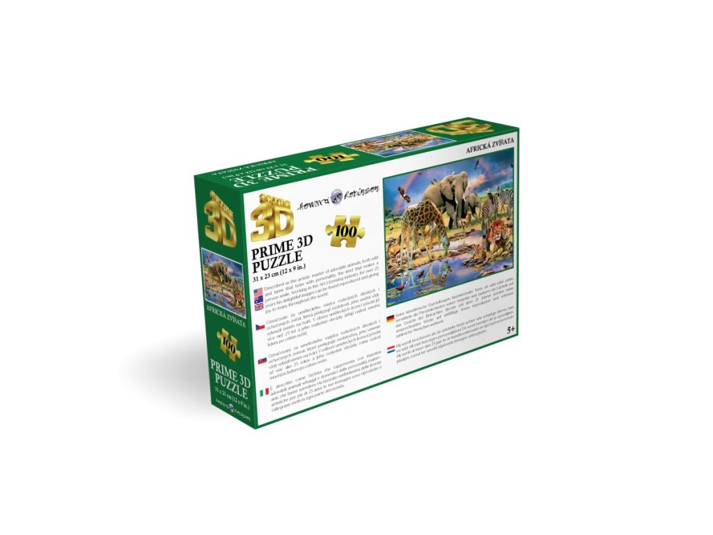 3D puzzle s motivem afrických zvířat. Balení obsahuje 100 dílků. Rozměry balení 23x15x5 cm. Rozměry složeného obrázku 31x23 cm. Věk 5+Doplňkové parametry