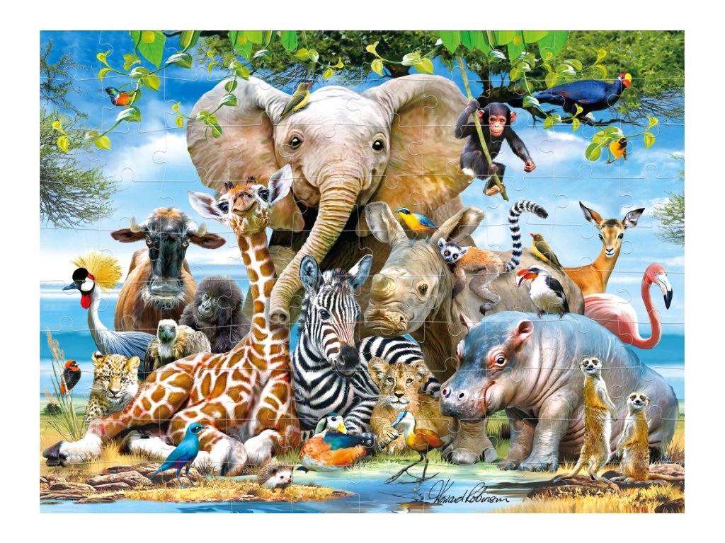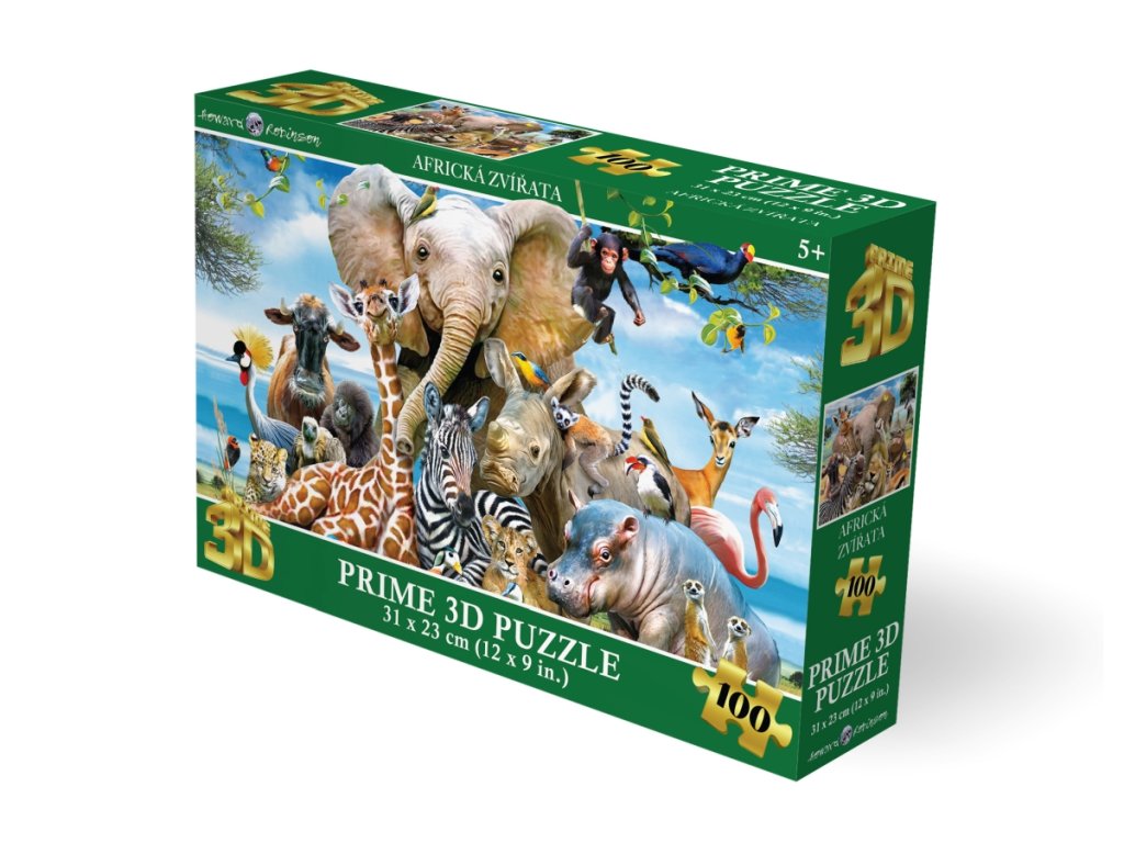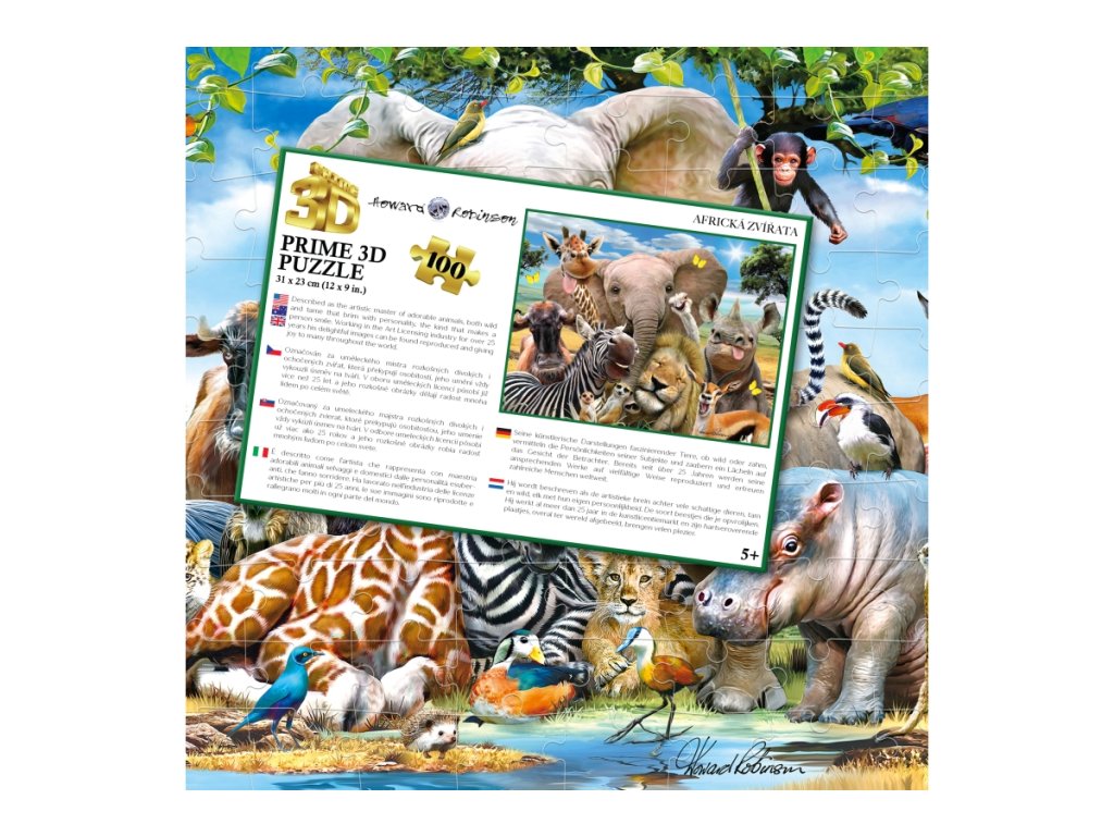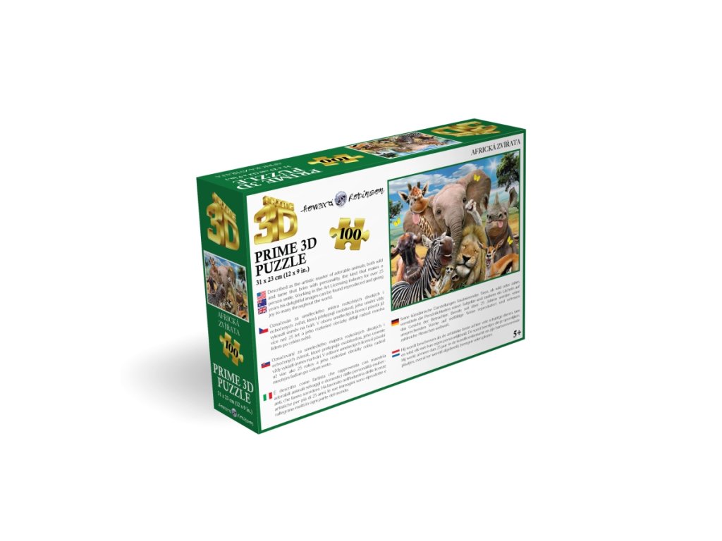 3D puzzle s motivem afrických zvířat. Balení obsahuje 100 dílků. Rozměry balení 23x15x5 cm. Rozměry složeného obrázku 31x23 cm. Věk 5+Doplňkové parametry