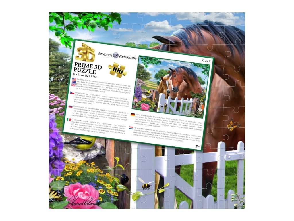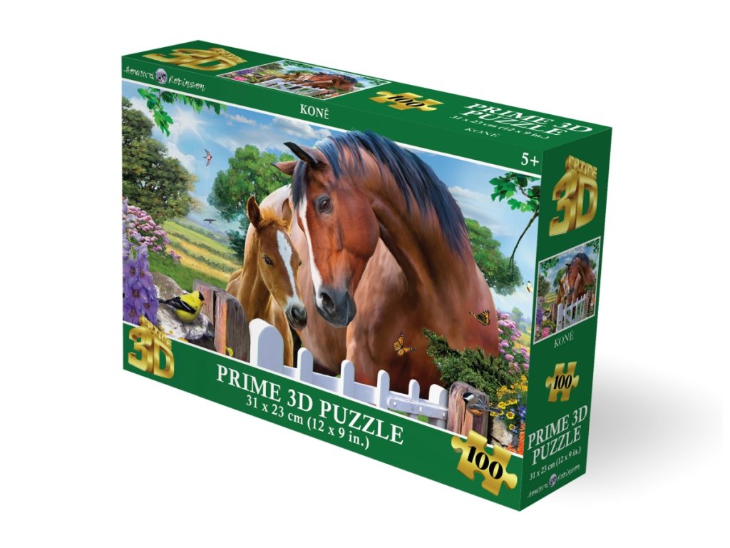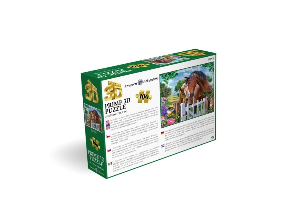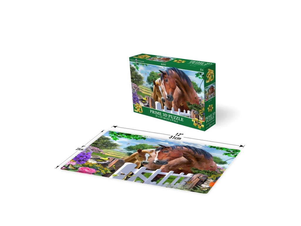 3D puzzle s motivem koní. Balení obsahuje 100 dílků. Rozměry balení 23x15x5 cm. Rozměry složeného obrázku 31x23 cm. Věk 5+Doplňkové parametry