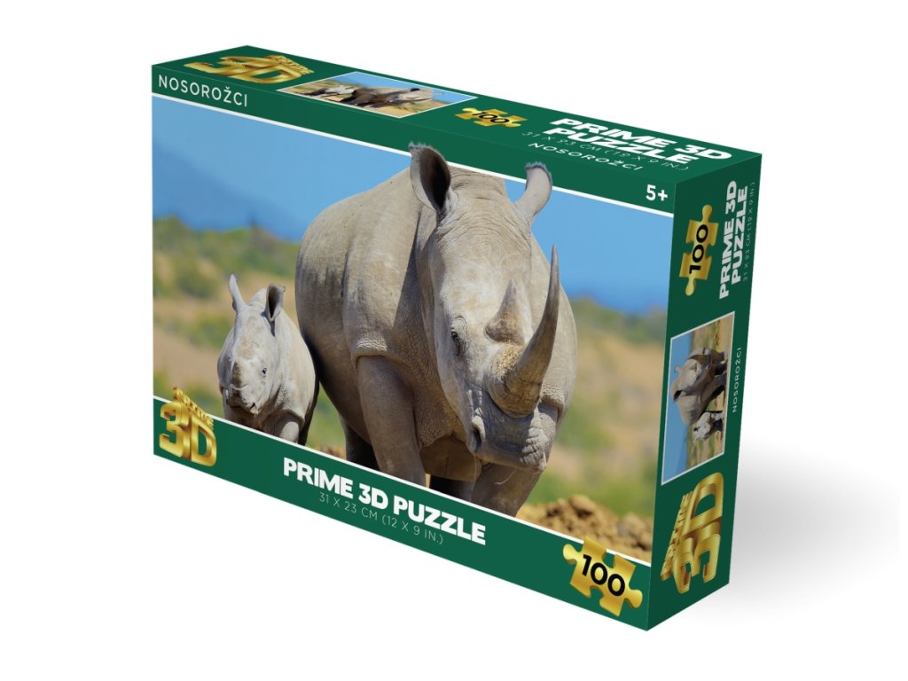 3D puzzle s motivem nosorožců. Balení obsahuje 100 dílků. Rozměry balení 23x15x5 cm. Rozměry složeného obrázku 31x23 cm. Věk 5+Doplňkové parametry