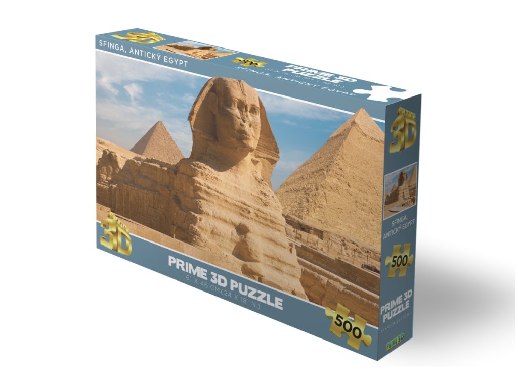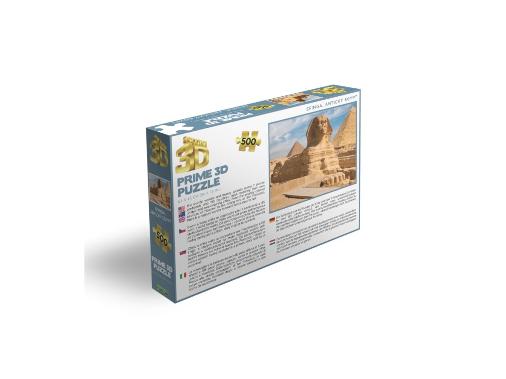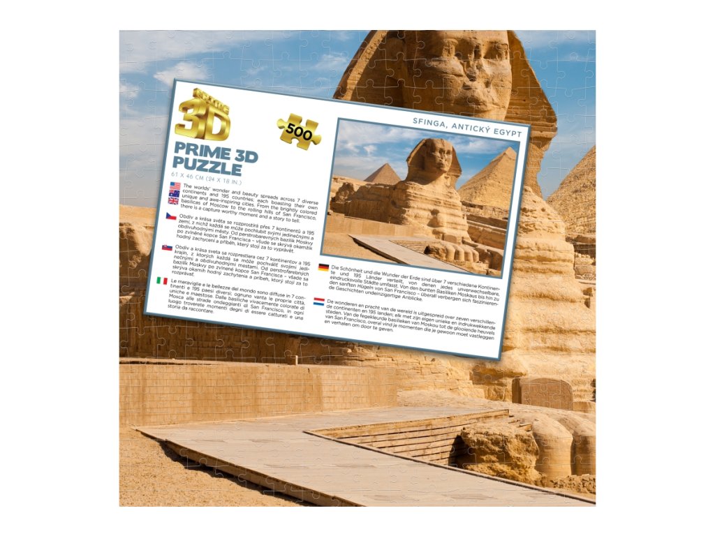 3D puzzle s motivem Sfingy v Egyptě. Balení obsahuje 500 dílků. Rozměry balení 31x20,3x5 cm. Rozměry složeného obrázku 61x46 cm. Věk 6+Doplňkové parametry