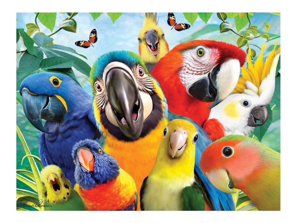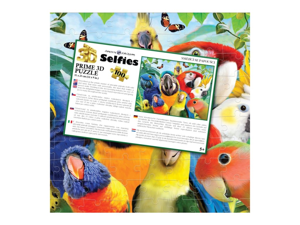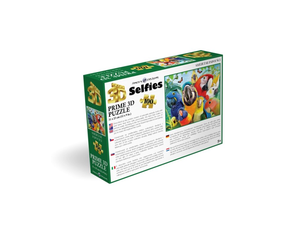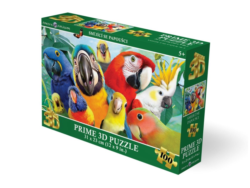 3D puzzle s motivem smějících se papoušků. Balení obsahuje 100 dílků. Rozměry balení 23x15x5 cm. Rozměry složeného obrázku 31x23 cm. Věk 5+Doplňkové parametry