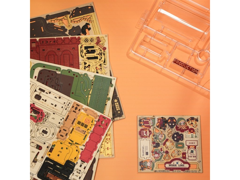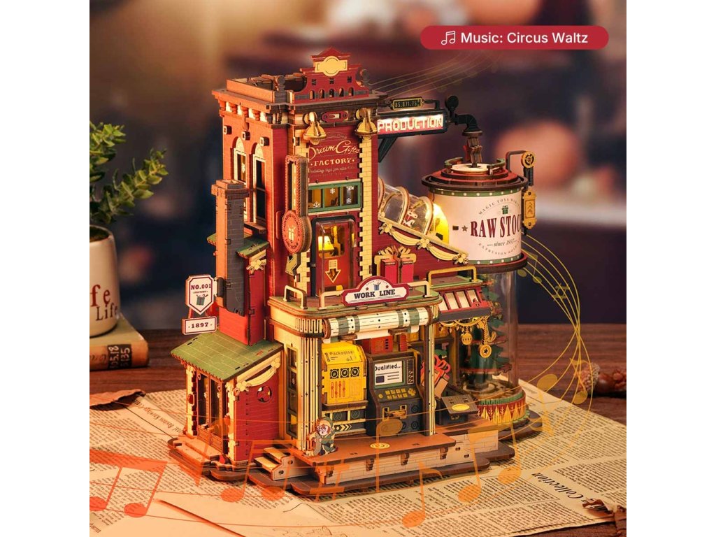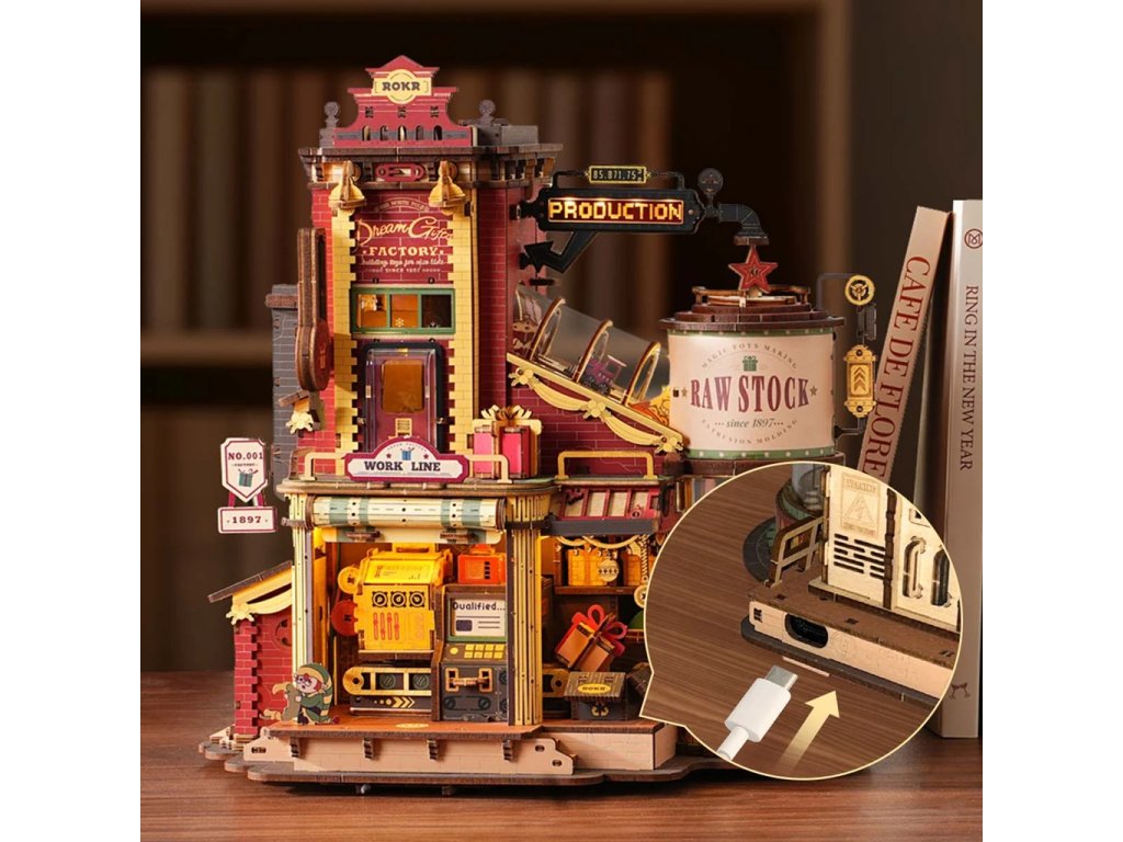 RoboTime 3D dřevěná skládačka hrací skříňky Kouzelná továrna na dárky