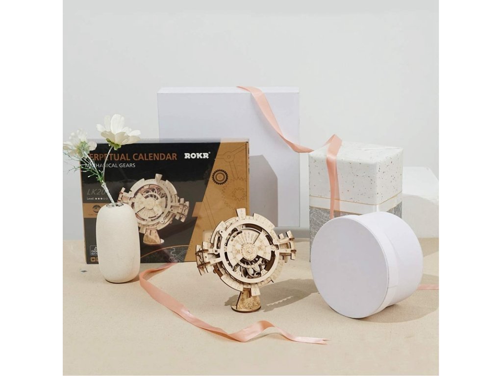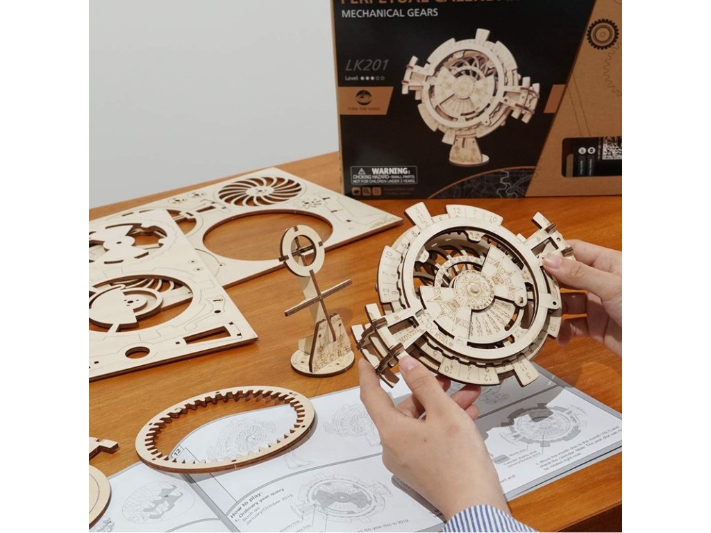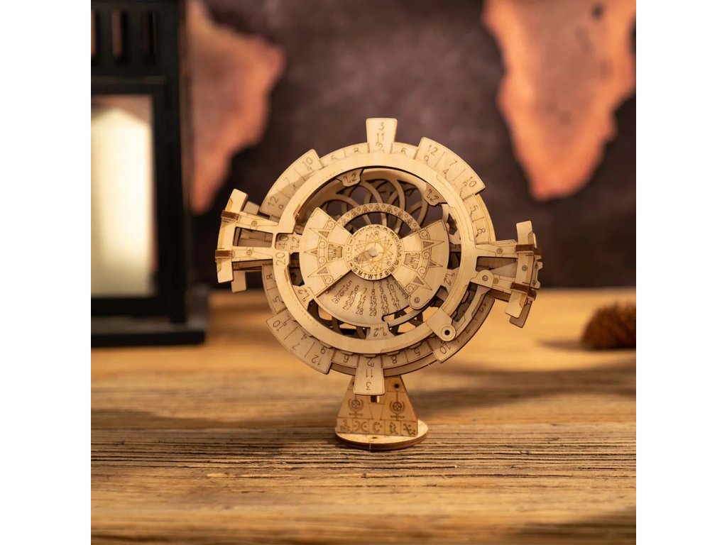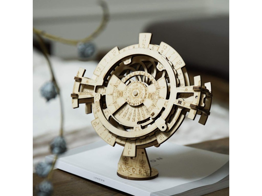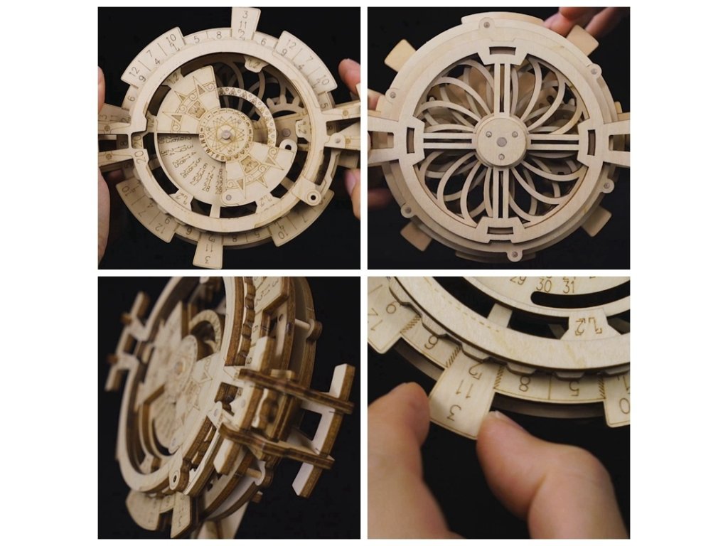 Ideální pro všechny, kdo začínají s mechanickými skládačkami. Stavebnice stolního kalendáře z překližky. S jeho pomocí můžete plánovat data až do roku 2040. Otáčením velkého kolečka nejprve vyberte rok a otáčením druhého vyberte měsíc, odkryjete kalendář na příslušný měsíc ve zvoleném roce. Jedinečný dárek pro všechny milovníky kutilství, luxusní interiérová dekorace do pokoje či kanceláře. Skládačka je dodávána v nesloženém stavu, balena v krabici. Vybaveno detailním návodem k sestavení.