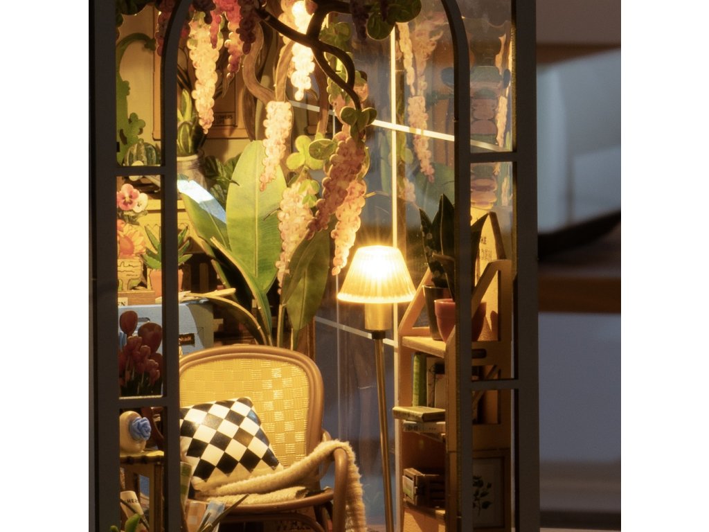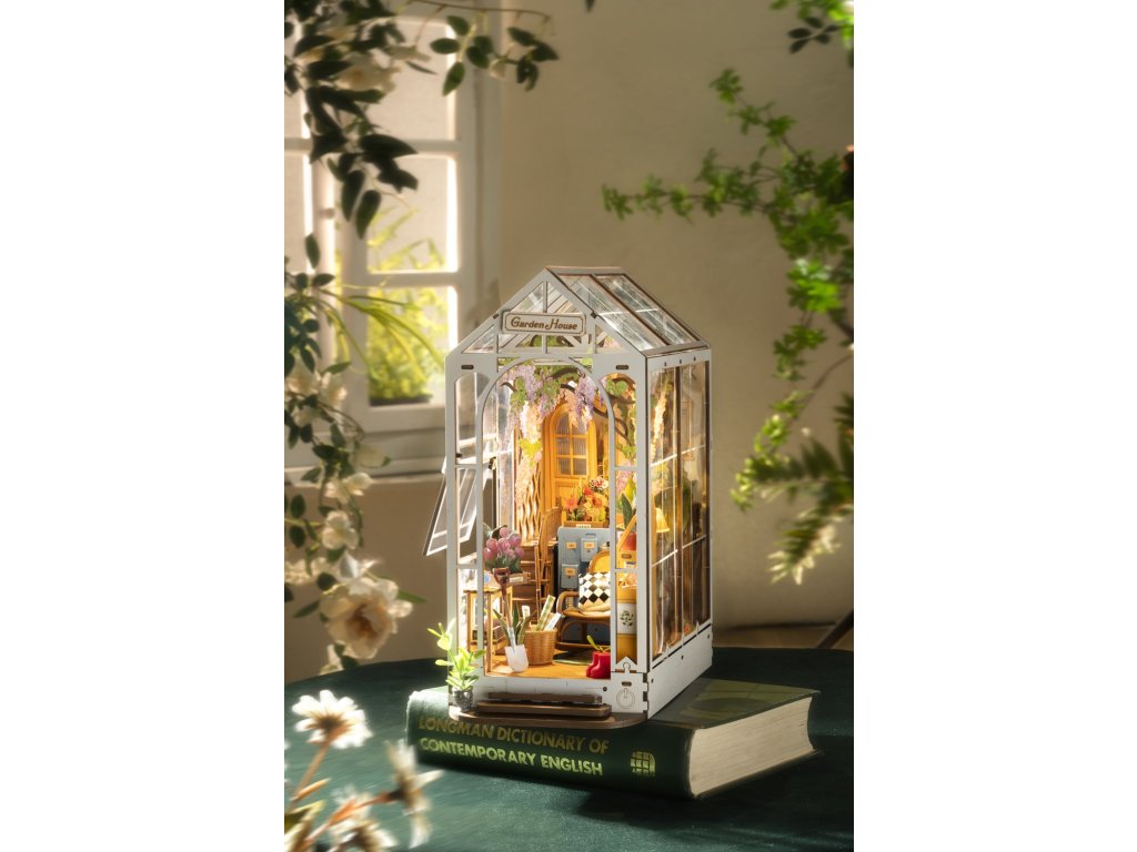 Představte si, jak si večer po práci sednete do svého oblíbeného křesla s šálkem teplého čaje, otevřete novou knihu a váš pohled sklouzne na tu nádhernou miniaturní zahradu mezi knihami, kterou jste sestavili vlastníma rukama. Váš 3D puzzle Garden House třpytící se v měkkém světle LED světel, přidá atmosféru do vašeho čtení. Dělejte to, co vás baví a učiňte své čtení ještě magičtějším.