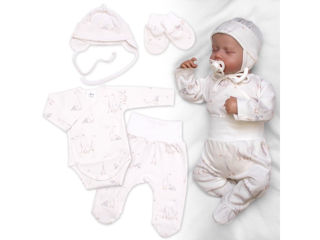 Sada oblečení pro miminko, 4D, bavlna, Husičky, smetanové