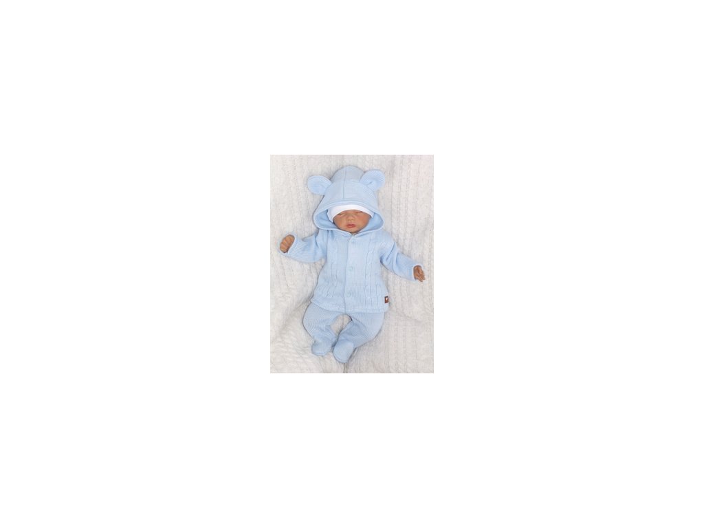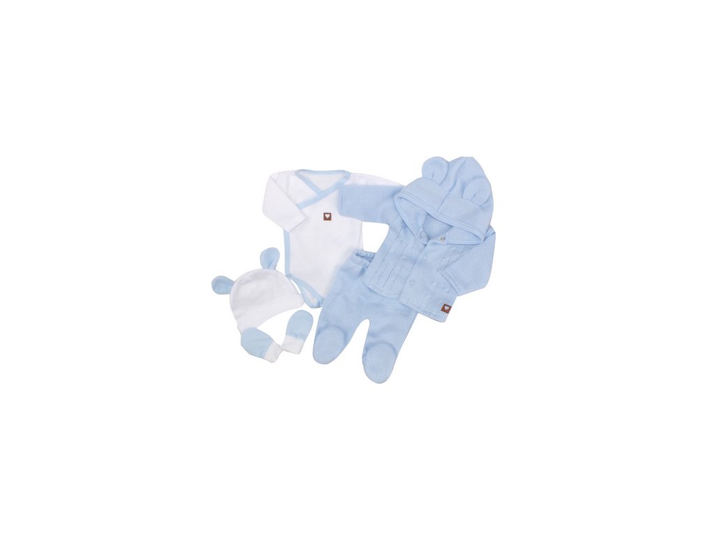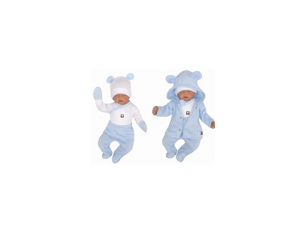 5-dílná kojenecká soupravička pletená do porodnice - modrá, bílá