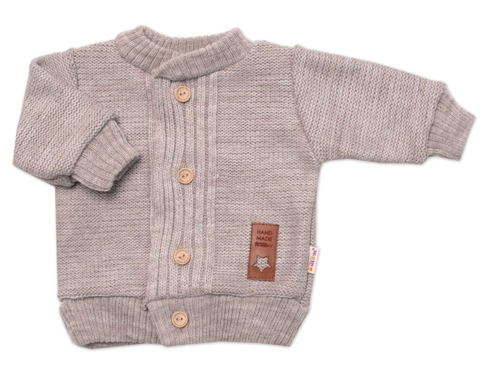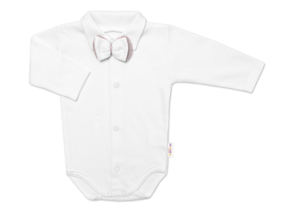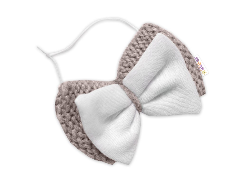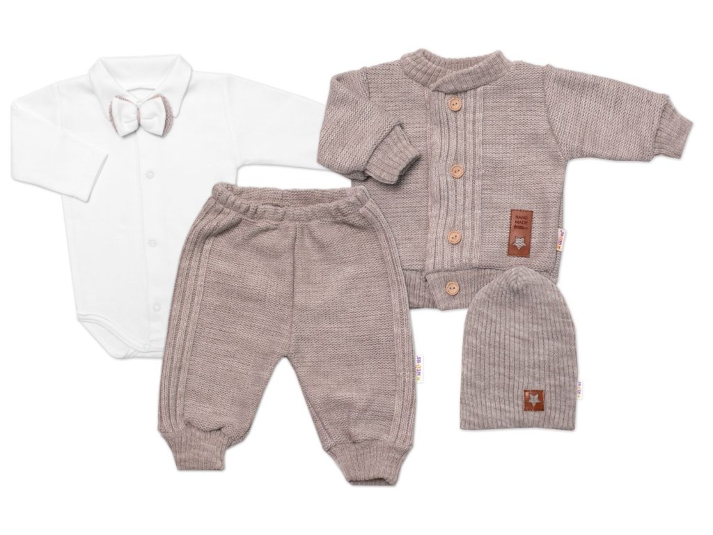 5-dílná pletená sada Baby Nellys, Boy, body, kalhoty, svetr, čepička, motýlek - béžová