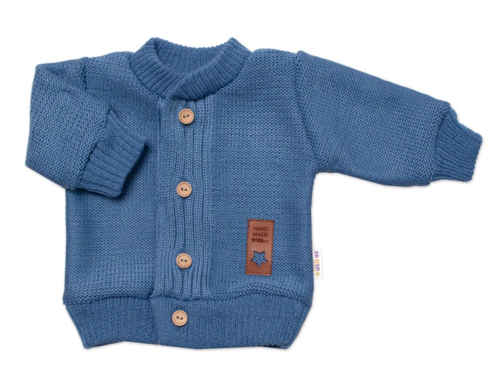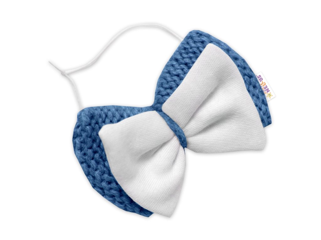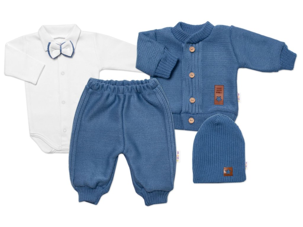 5-dílná pletená sada Baby Nellys, Boy, body, kalhoty, svetr, čepička, motýlek - modrá