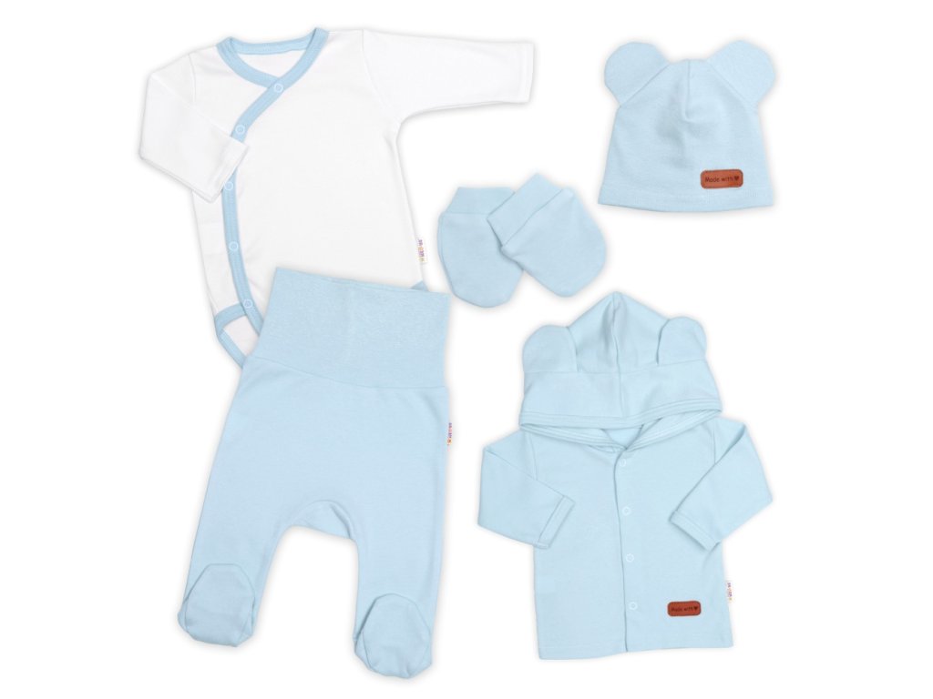 Bavlněná souprava pro miminko do porodnice 5D, Made with love, baby blue