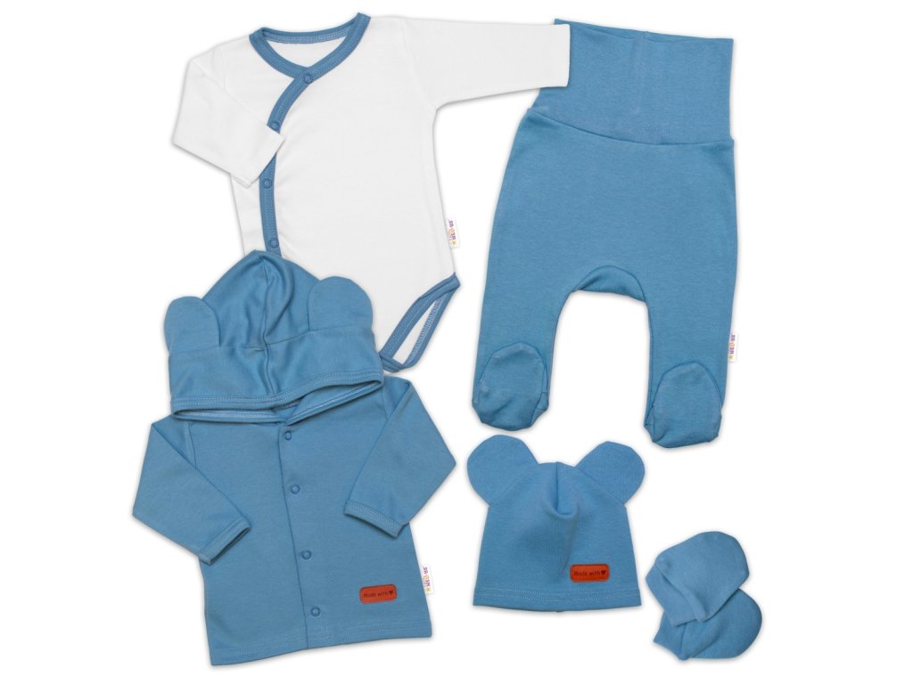 Bavlněná souprava pro miminko do porodnice 5D, Made with love, modrá