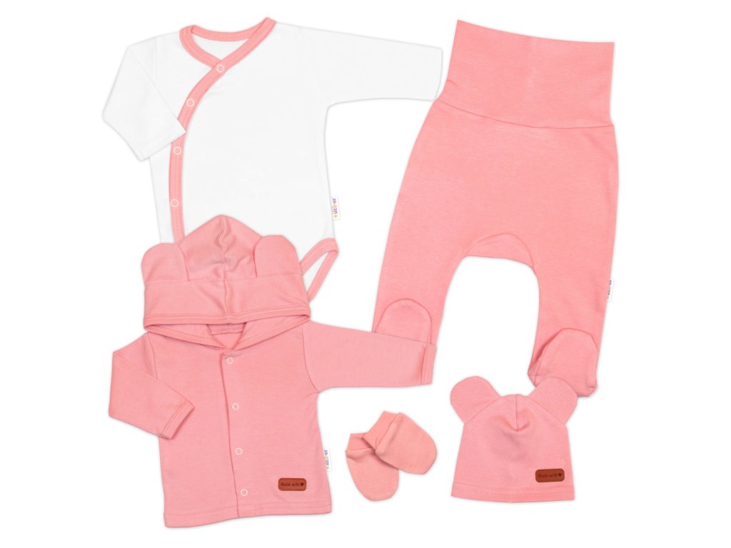Bavlněná souprava pro miminko do porodnice 5D, Made with love, růžová