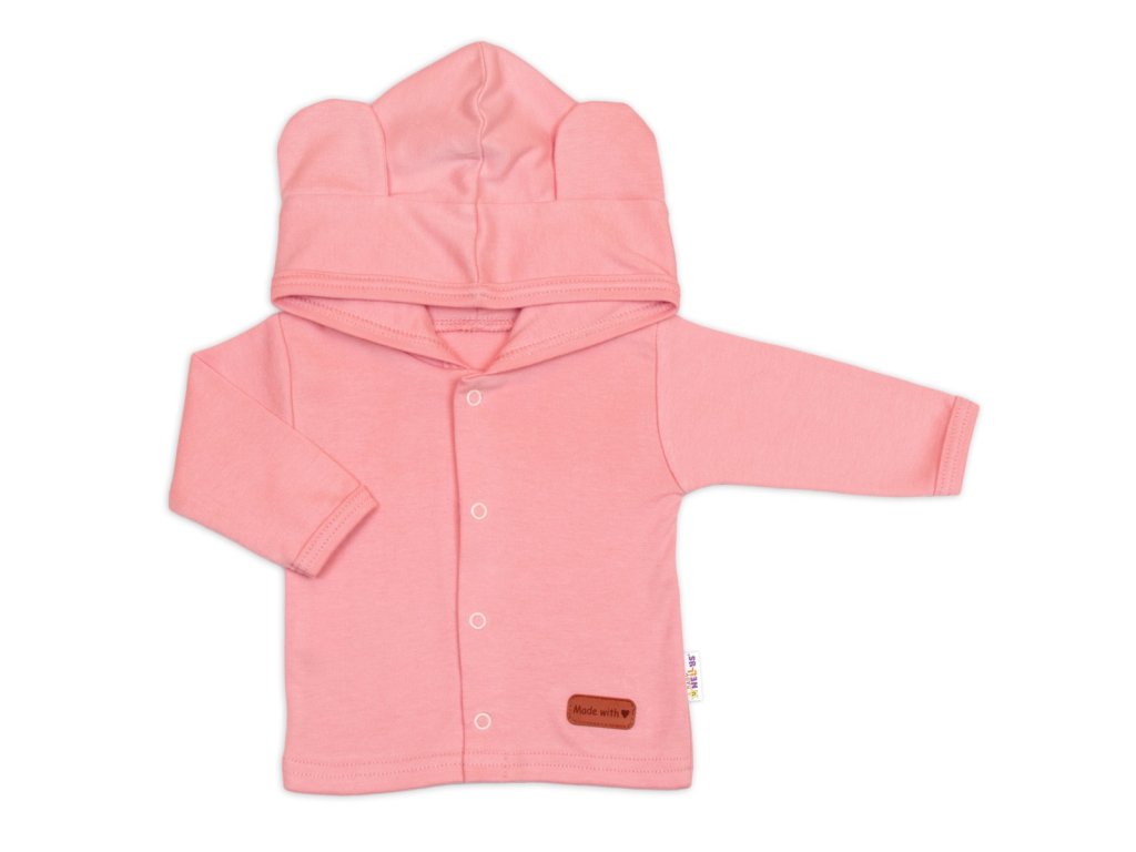 Bavlněná mikina s kapucí a oušky: Mikina, která udrží vaše miminko v teple a zároveň vypadá neodolatelně roztomile díky ouškům na kapuci. Kapuce je dvouvrstvá.