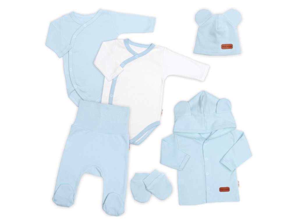 Bavlněná souprava pro miminko do porodnice 6D, Made with love, baby blue