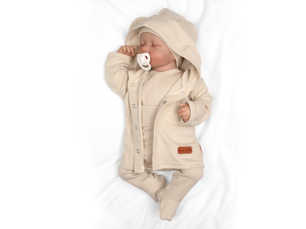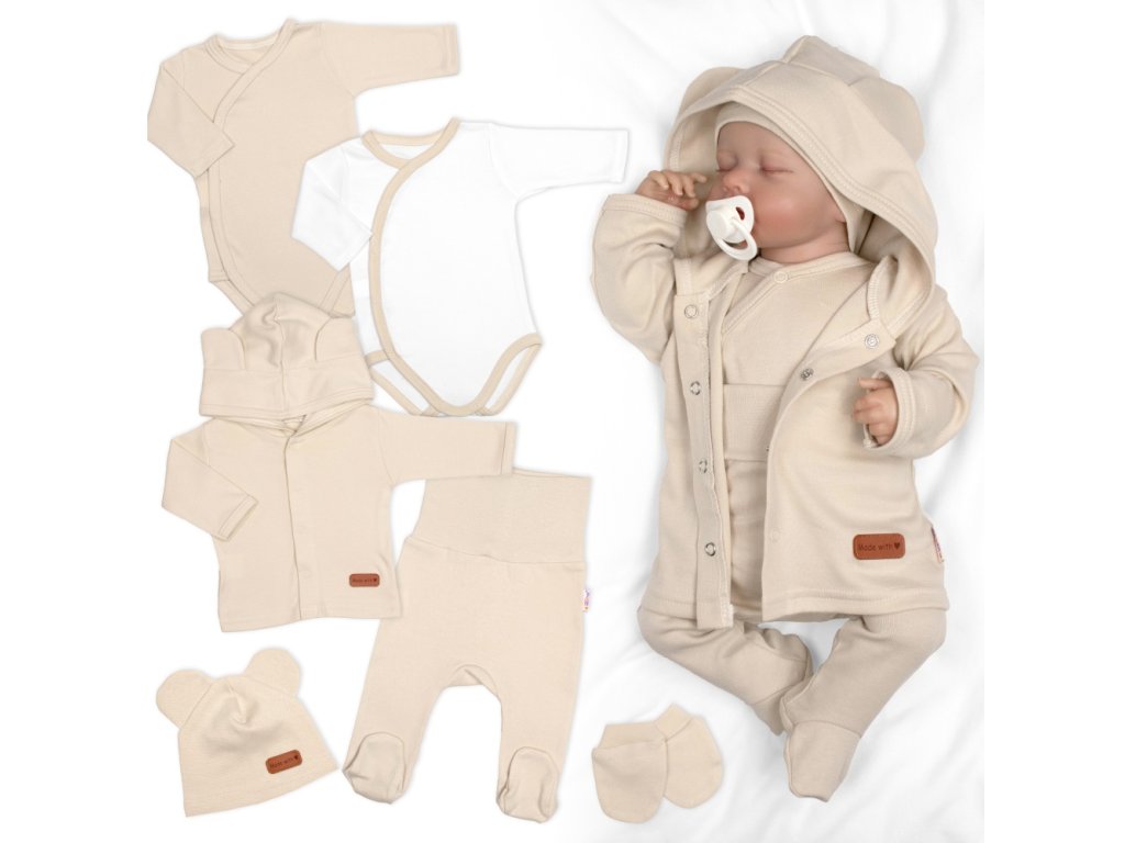 Bavlněná souprava pro miminko do porodnice 6D, Made with love, béžová