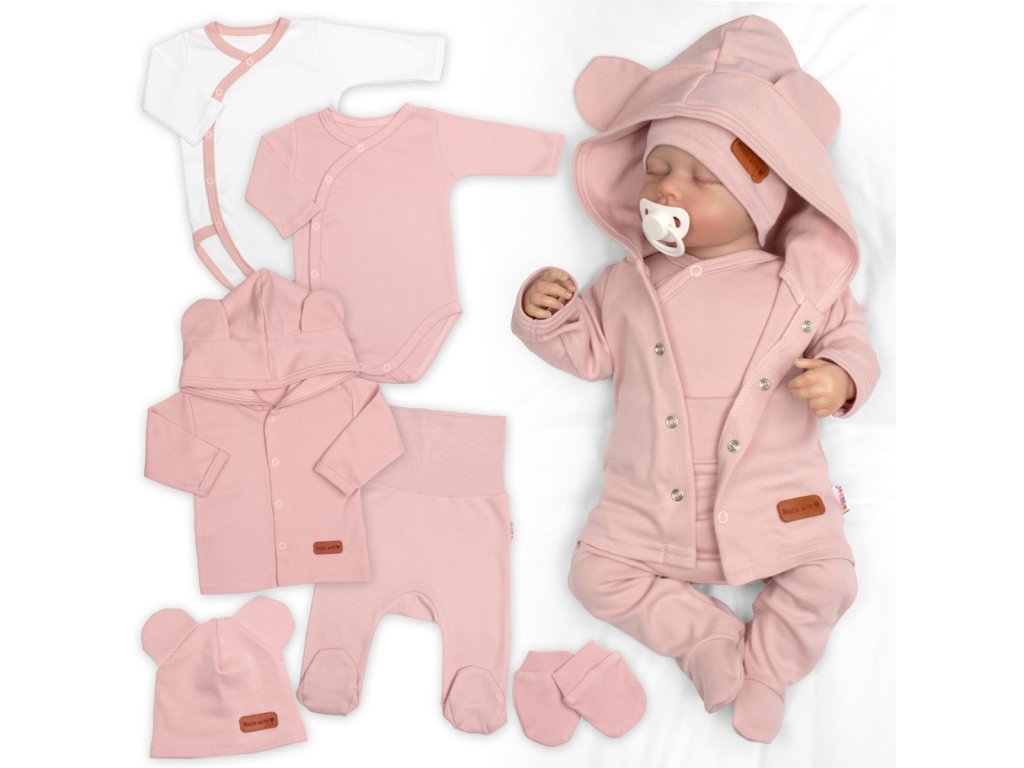 Bavlněná souprava pro miminko do porodnice 6D, Made with love, pudr. růžová
