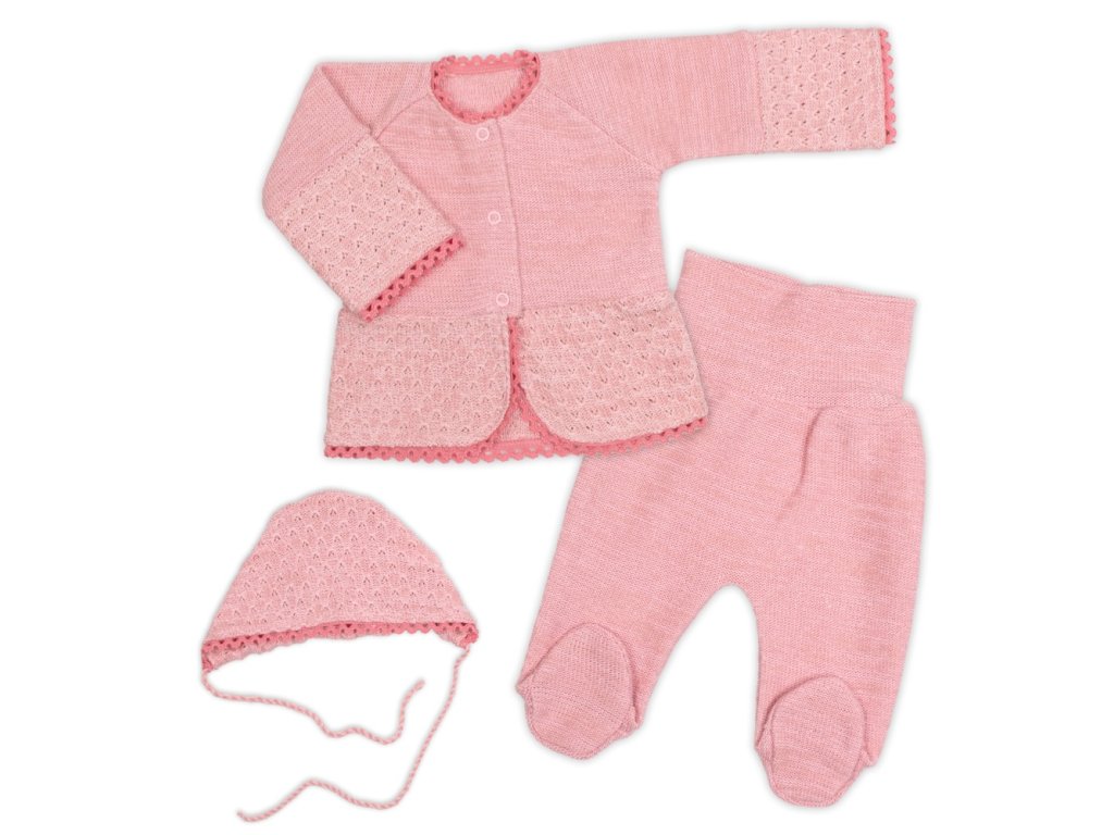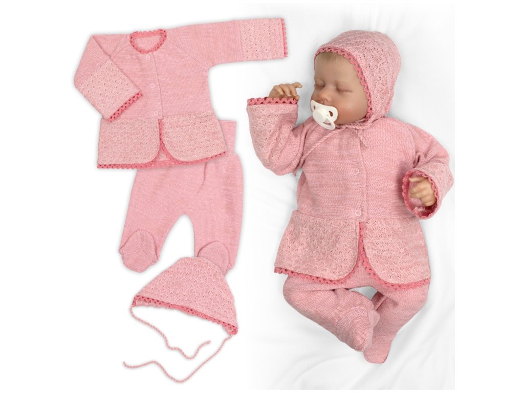 Luxusní pletená sada, kabátek, polodupačky a čepice, 3D - pudrově růžová