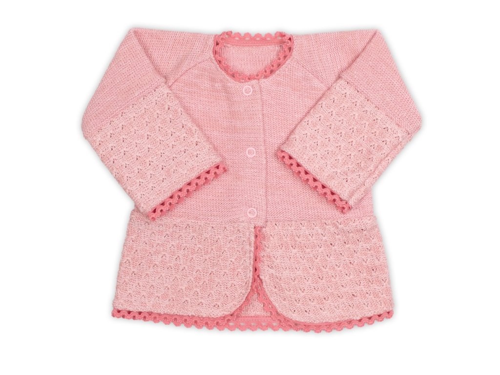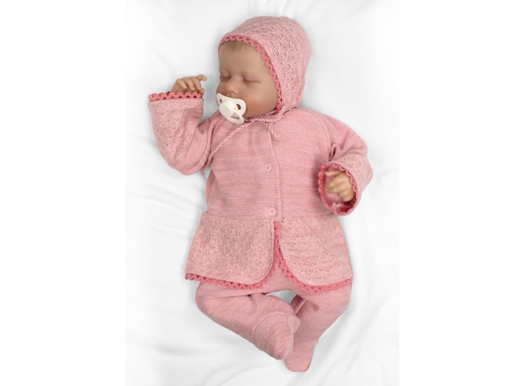 Luxusní pletená sada, kabátek, polodupačky a čepice, 3D - pudrově růžová