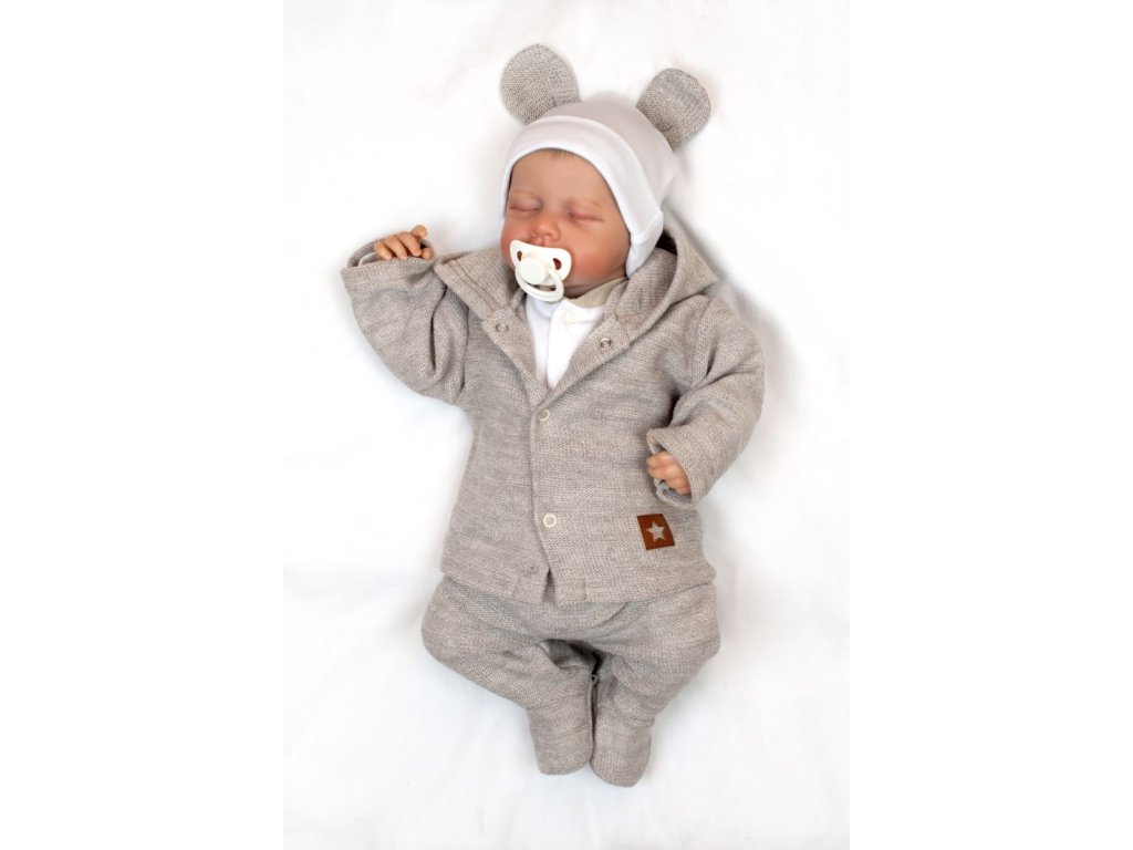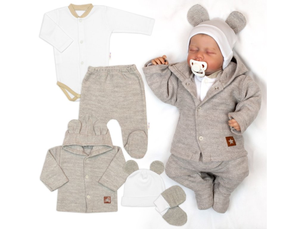 Pletená sada, Star Boy 5D, body, polodupačky, svetr, čepička, rukavičky - béžová, bílá