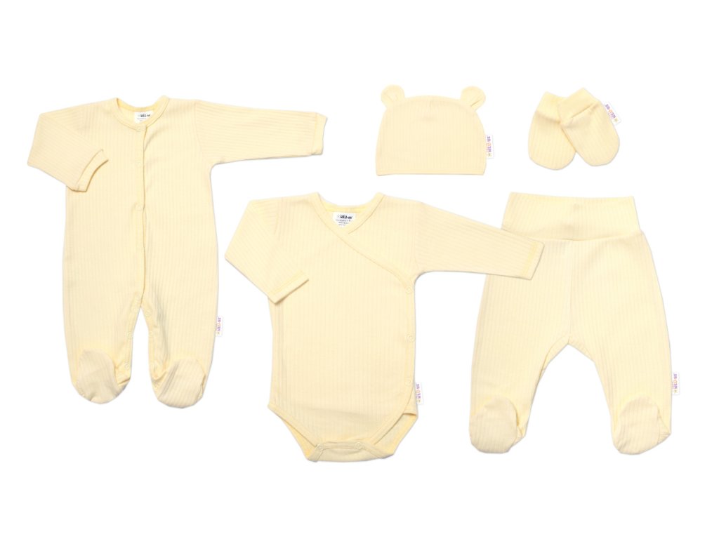 Praktická 5-dílná žebrovaná soupravička do porodnice Baby Nellys BOY, žlutá