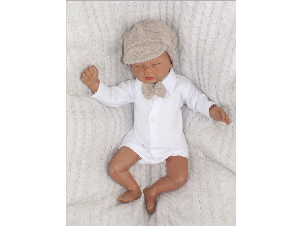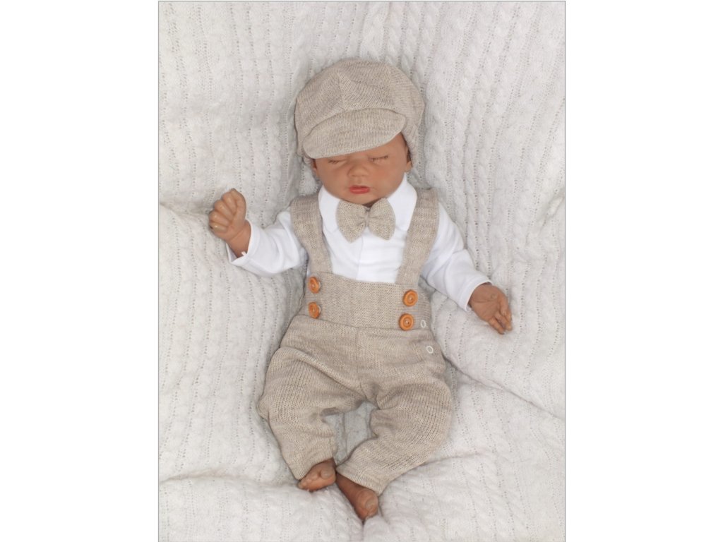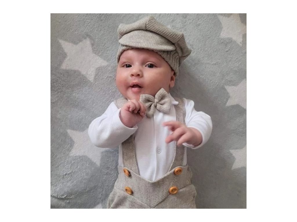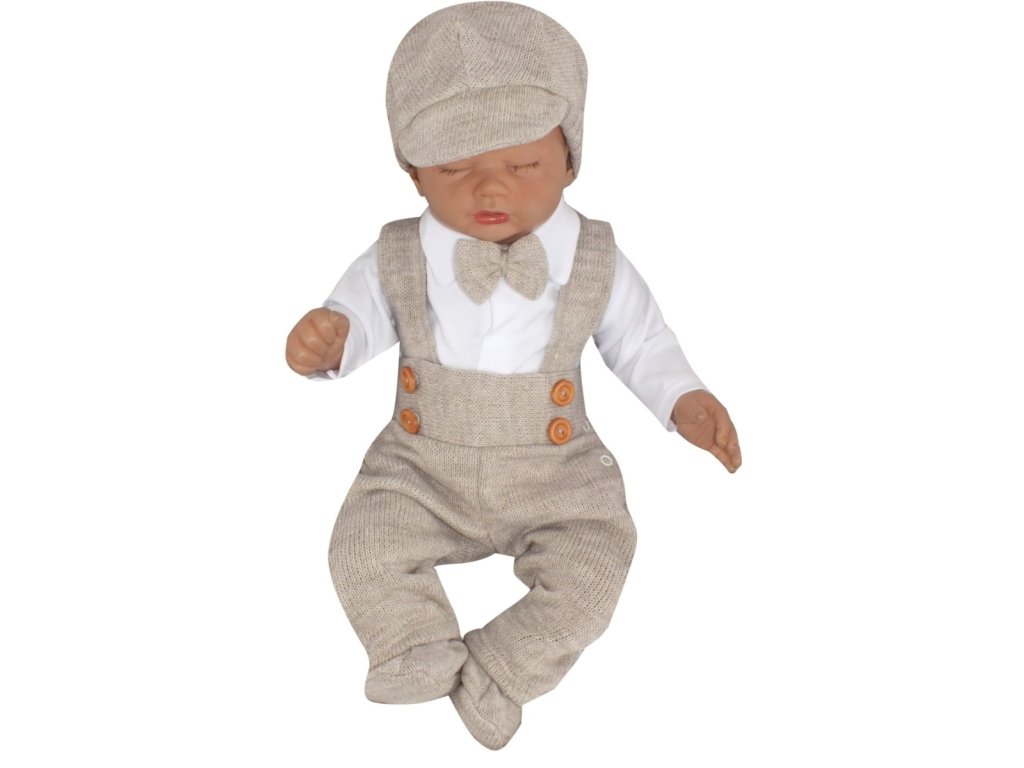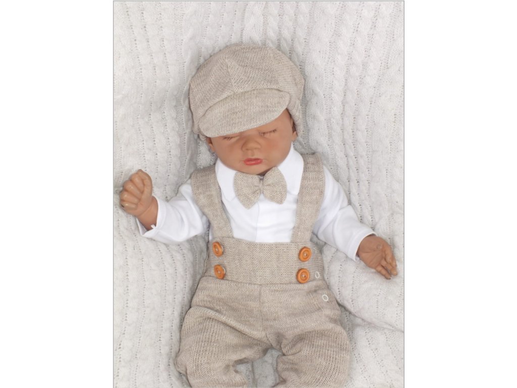 Z&Z 5-dílná pletená sada Boy, body, kalhoty, čepička, motýlek, botičky, béžová