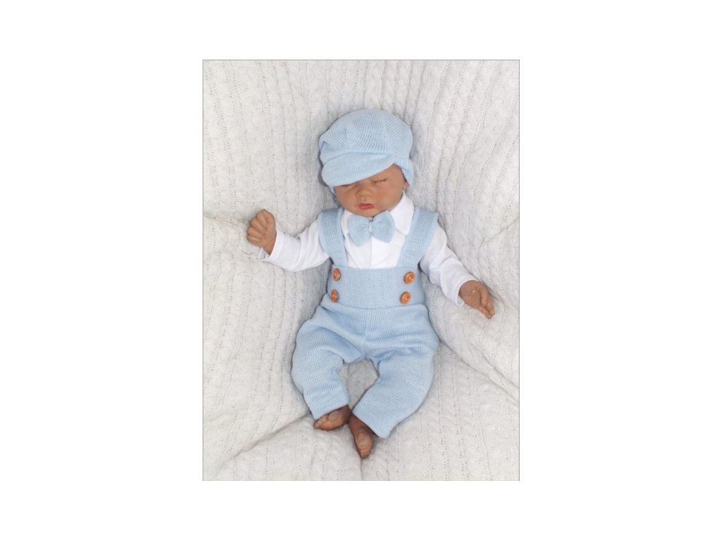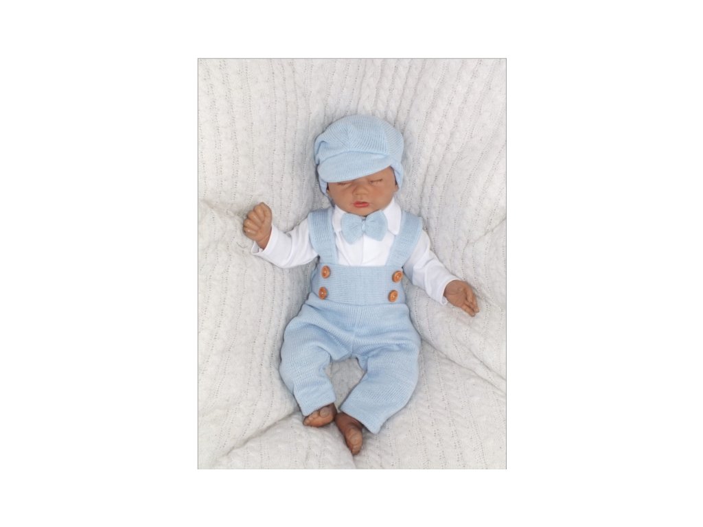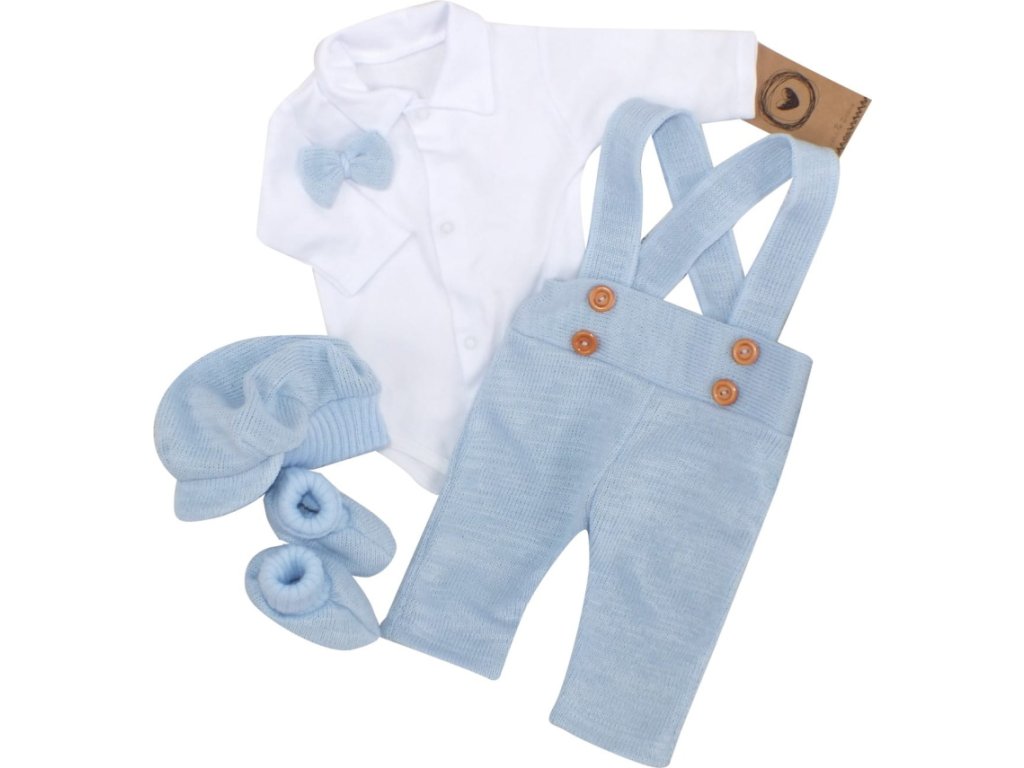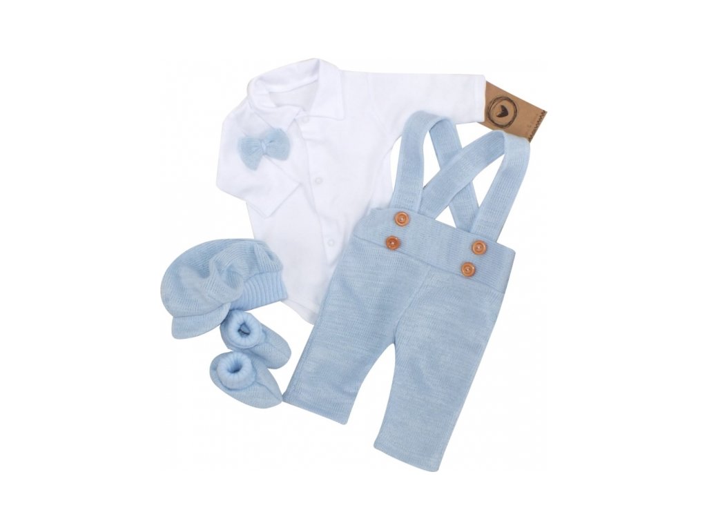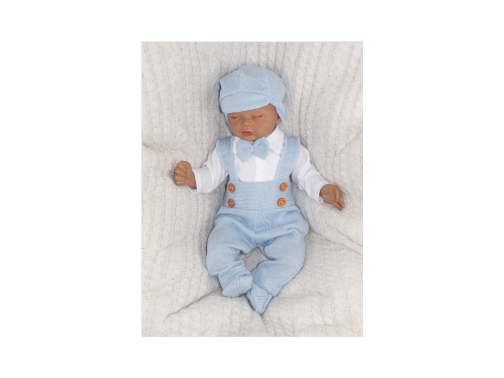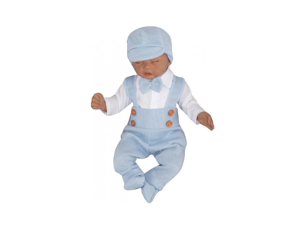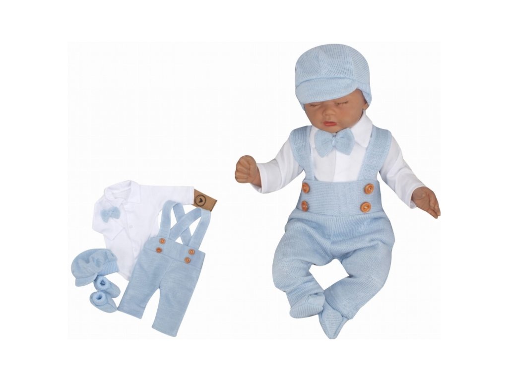 Z&Z 5-dílná pletená sada Boy, body, kalhoty, čepička, motýlek, botičky, modrá