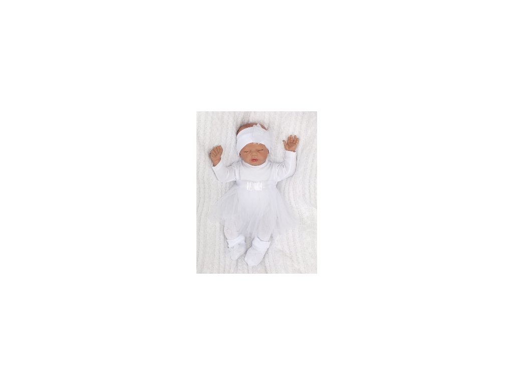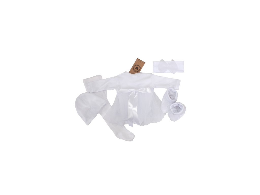 Z&Z 5-dílná soupravička sukničkobody, punčochy, čepička, čelenka, botičky - bílá