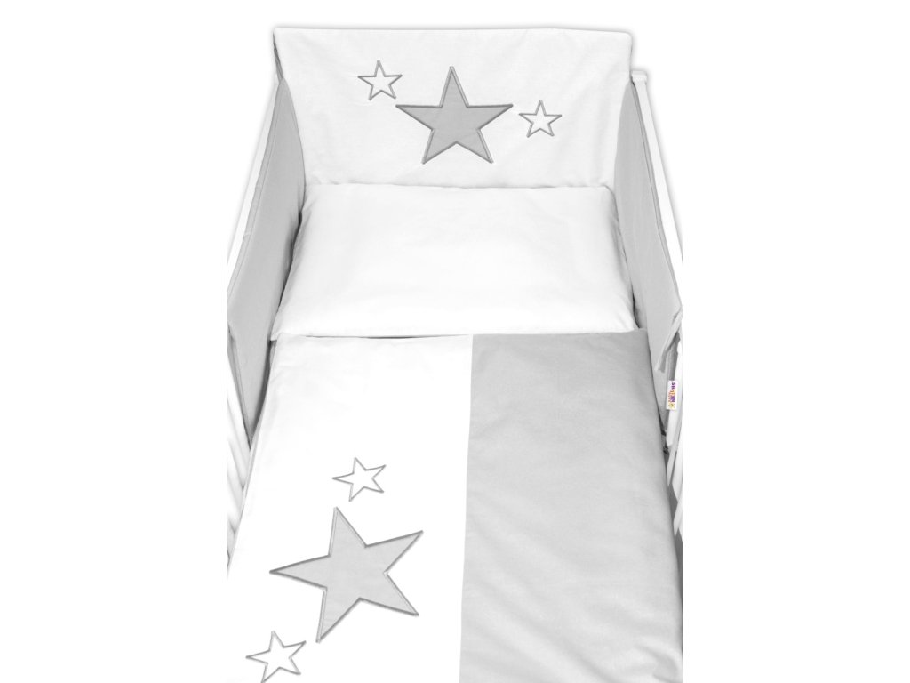 Baby Nellys 5-dílná sada do postýlky Baby Stars - šedá