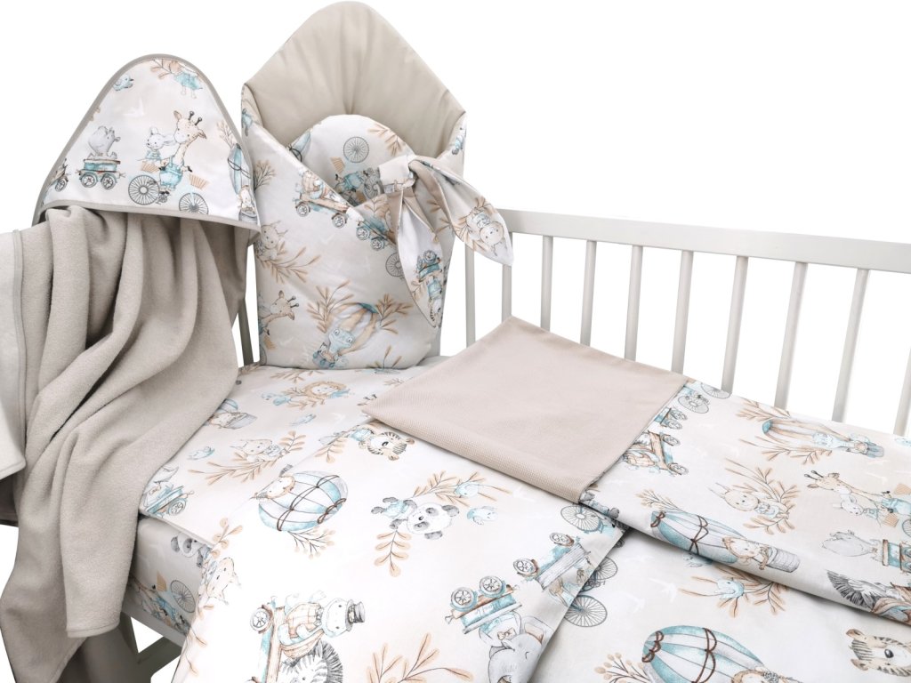 6-ti dílná výhod. sada s dárkem pro miminko, 135 x 100cm, ZOO na cestách - mátová/cappucci