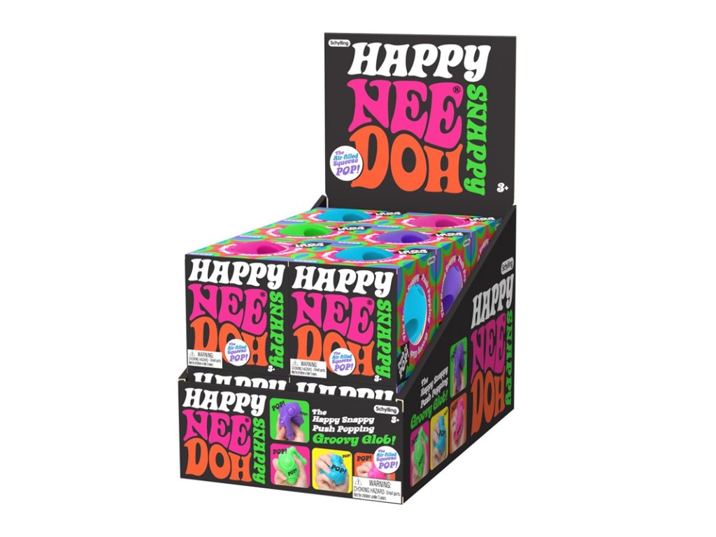 Happy Snappy je hračka která děti zabaví na celé hodiny a pomůže dětem taky proti stresu. Tyto kuličky nejsou plněny jako běžné kuličky NeeDoh, plní se vzduchem. Jemně zmáčkněte vzduchem naplněnou kouli a sledujte, jak vyčnívají konkávní otvory, které vydávají zvuk „praskání“ bublin. Happy Snap NeeDoh je skvělá hračka , zvláště vhodná pro děti s ADD, ADHD, OCD, autismem a úzkostí. Pomáhá dětem soustředit se a věnovat pozornost dané hračce. Koule je vyrobená z netoxických materiálů, dostupná ve čtyřech barvách.