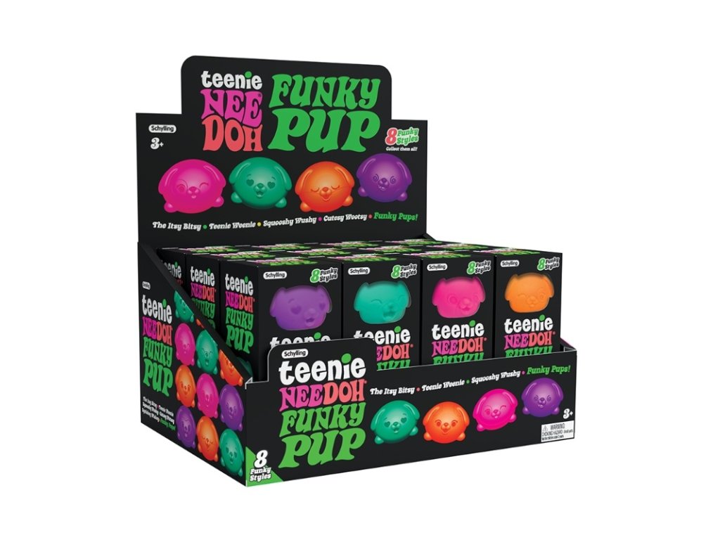 S Teenie NeeDoh Funky Pup od Schylling si přinesete domů malého kamaráda, který rozptýlí každou špetku stresu. Představujeme vám mačkací antistresová štěňátka, která jsou připravena stát se vašimi nejlepšími přáteli. Nejde jen o obyčejnou hračku, ale klíč k vaší duševní pohodě. Každé štěňátko z této sady je naplněno speciální super měkkou směsí, navrženou pro maximální uvolnění a zábavu. Jejich roztomilé oči, ohnuté uši a nos vás nejen rozesmějí, ale také pomohou zlepšit soustředění a posílit pozornost. Díky různorodosti osmi barev a stylů, je každé rozbalení balení novým dobrodružstvím.