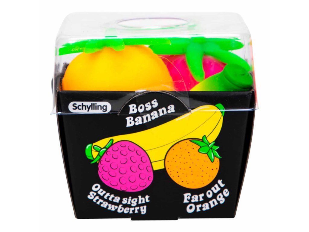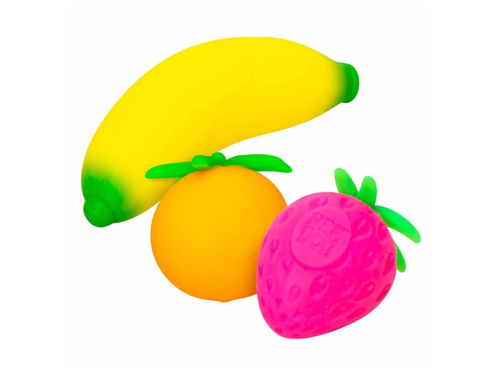 Schylling's Groovy Fruit NeeDoh je plný ovocné zábavy. Tahle jedinečná antistresová a neposedná hračka obsahuje banán, jahodu a pomeranč, které lze mačkat, tahat a trhat. Ideální pro zábavu na cestách nebo jako prostředek k úlevě od úzkosti. Nee Doh je vyroben z netoxického materiálu podobného těstu, který se vždy vrátí do původního tvaru. Dá se mačkat, tahat a rozbíjet. Ideální pro zábavu na cestách nebo jako prostředek k úlevě od úzkosti. Groovy Fruit také pomáhá dětem soustředit se a udržet pozornost.