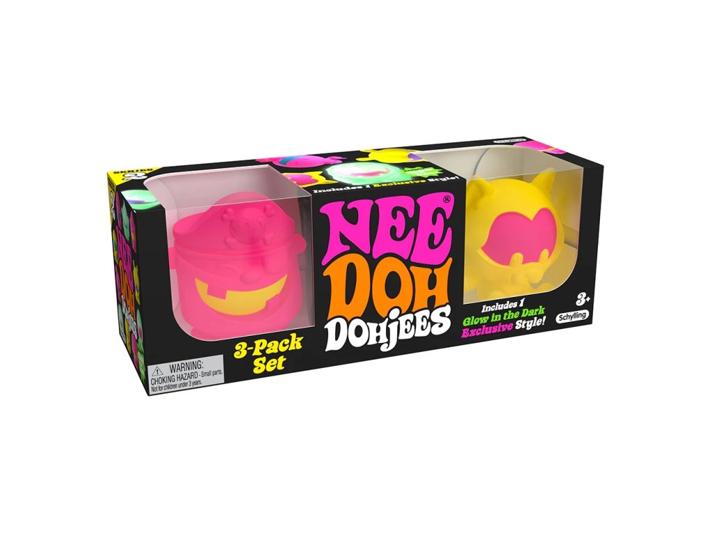 Sada 3 příšerek. Schylling's NeeDoh Dohjees je řada malých stvoření, která tvoří ultimátní neposednou hračku, která je připravená k mačkání či tahání. Každá příšerka má ve svém bříšku antistresovou kuličku, kterou je možné vytáhnout NeeDoh Dohjees je hračka, která je vyrobena z netoxického materiálu podobného těstu, který se vždy vrátí do původního tvaru. Ideální pro zábavu na cestách nebo jako prostředek proti úzkosti, pomáhá také dětem soustředit se a udržet pozornost. V každém balení mohou být různé příšerky. Štěně, hroch kočka nebo monstra. Navíc každé balení obsahuje jednu příšerku Glow In The Dark NeeDoh Dohjee. Dodává se v různých stylech a barvách- nikdy nevíte, co dostanete. Zasíláme náhodně.
