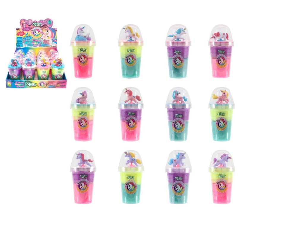 Sliz - hmota Slimy 155 g s jednorožcem 14x7 cm 4 barvy v kelímku (1 ks)