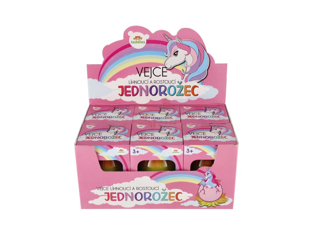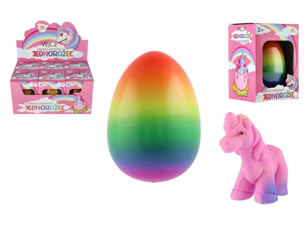 Vejce líhnoucí a rostoucí jednorožec plast 7x10cm v krabičce 9,5x13 cm (1 ks)